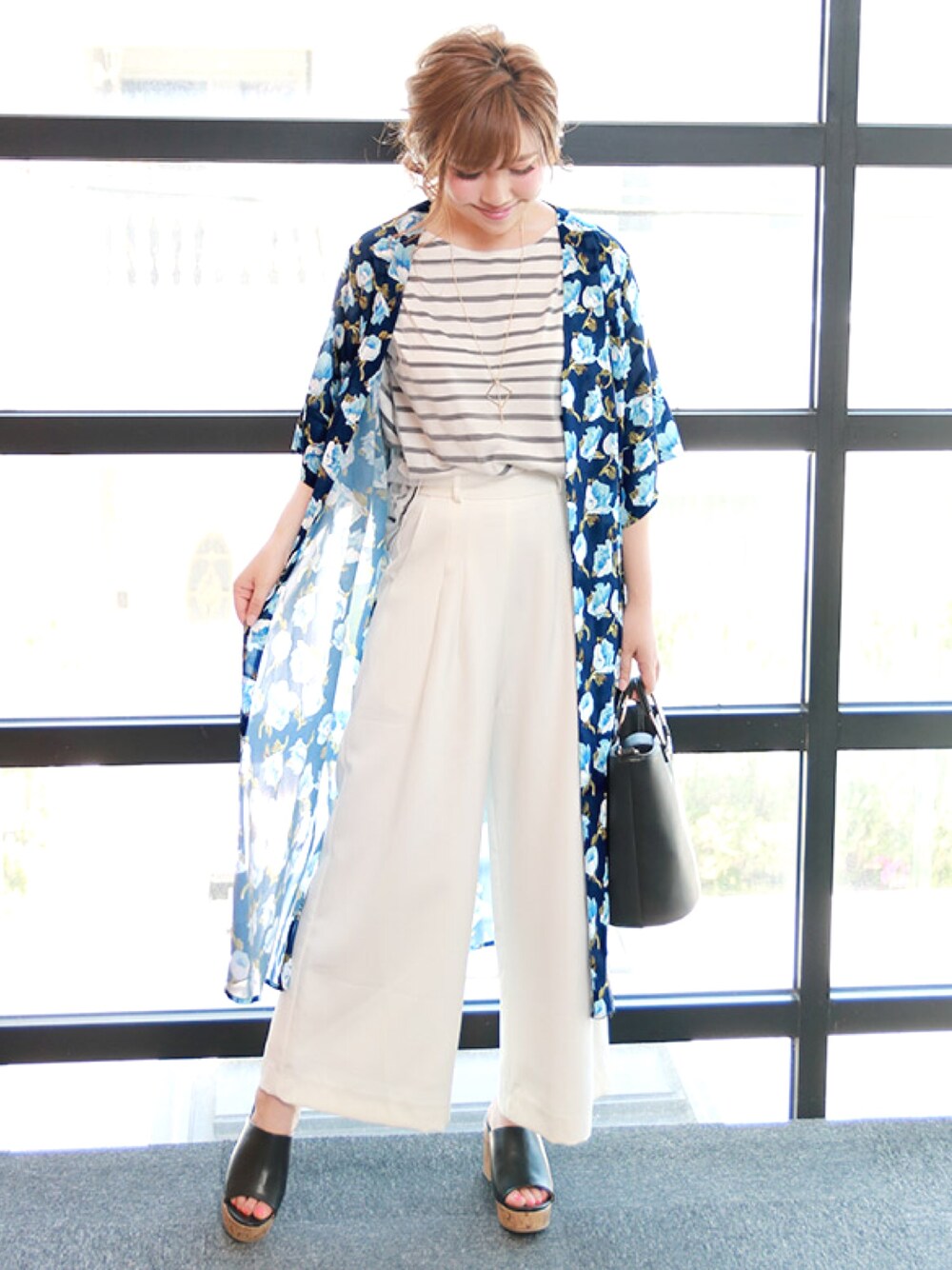 花柄のガウン×ボーダーで柄柄コーデにしてみました🌻