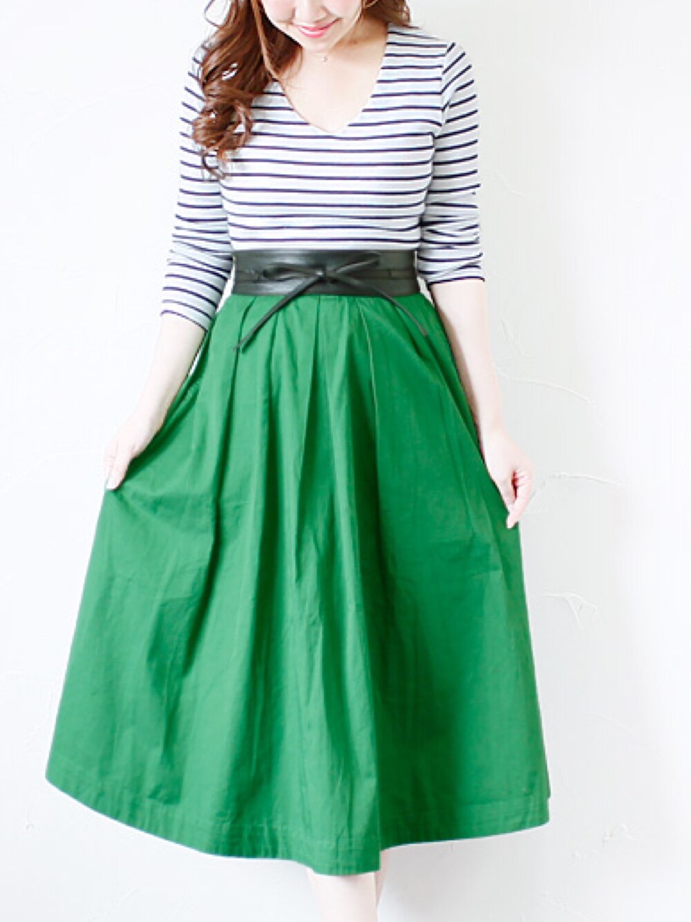 ogayuriのスカート「ウエストタック・コットンフレアスカート」を使ったコーディネート