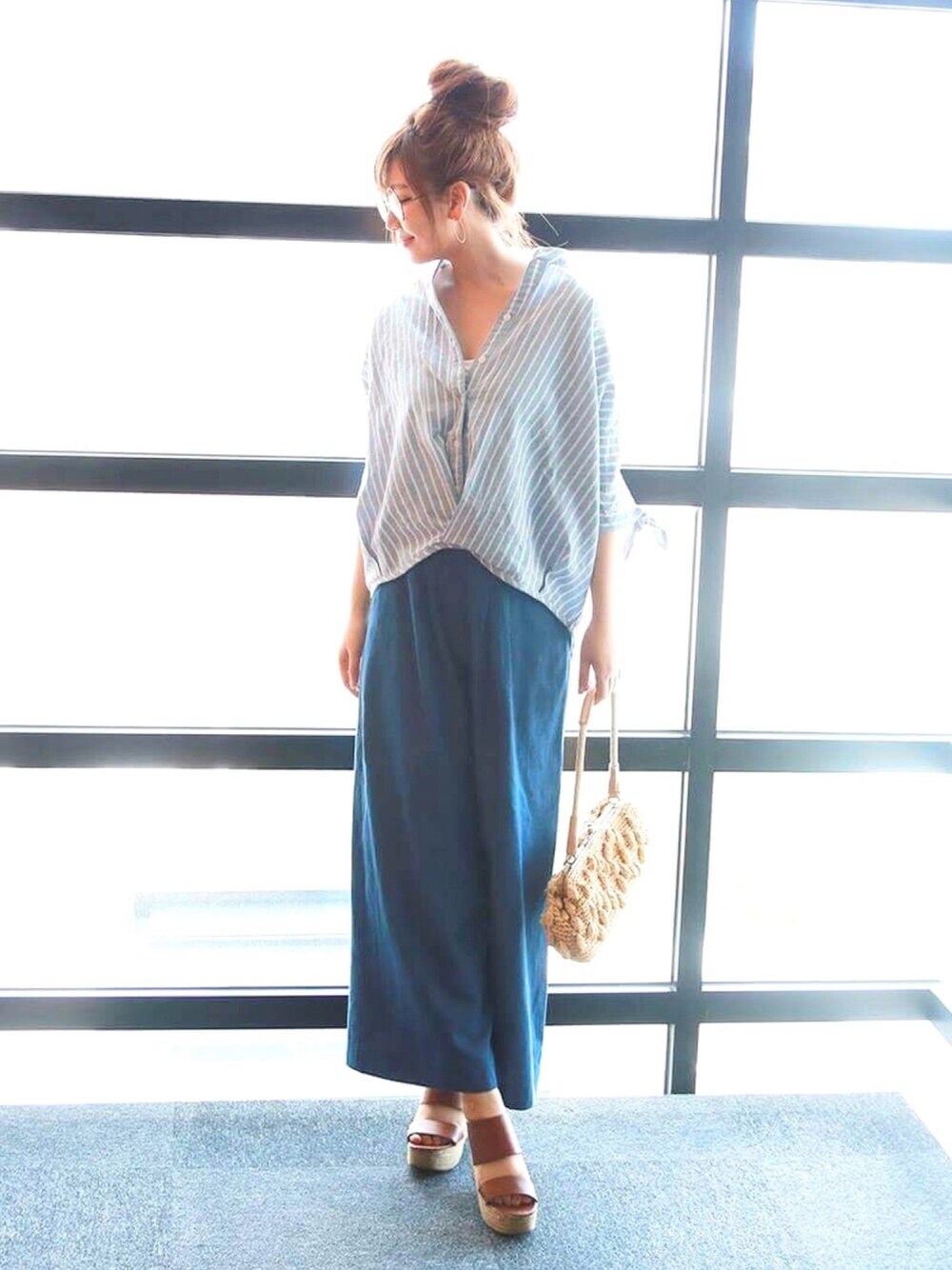 トレンドの襟抜きシャツとワイドパンツを合わせました。大人の休日コーデ☀️