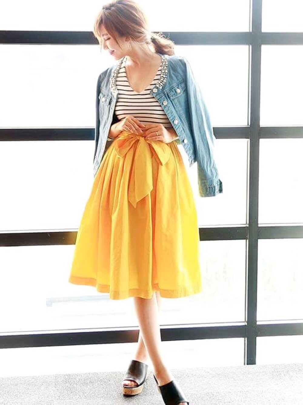 トレンドのイエロースカートにボーダーを合わせて旬コーデにしてみました😎
