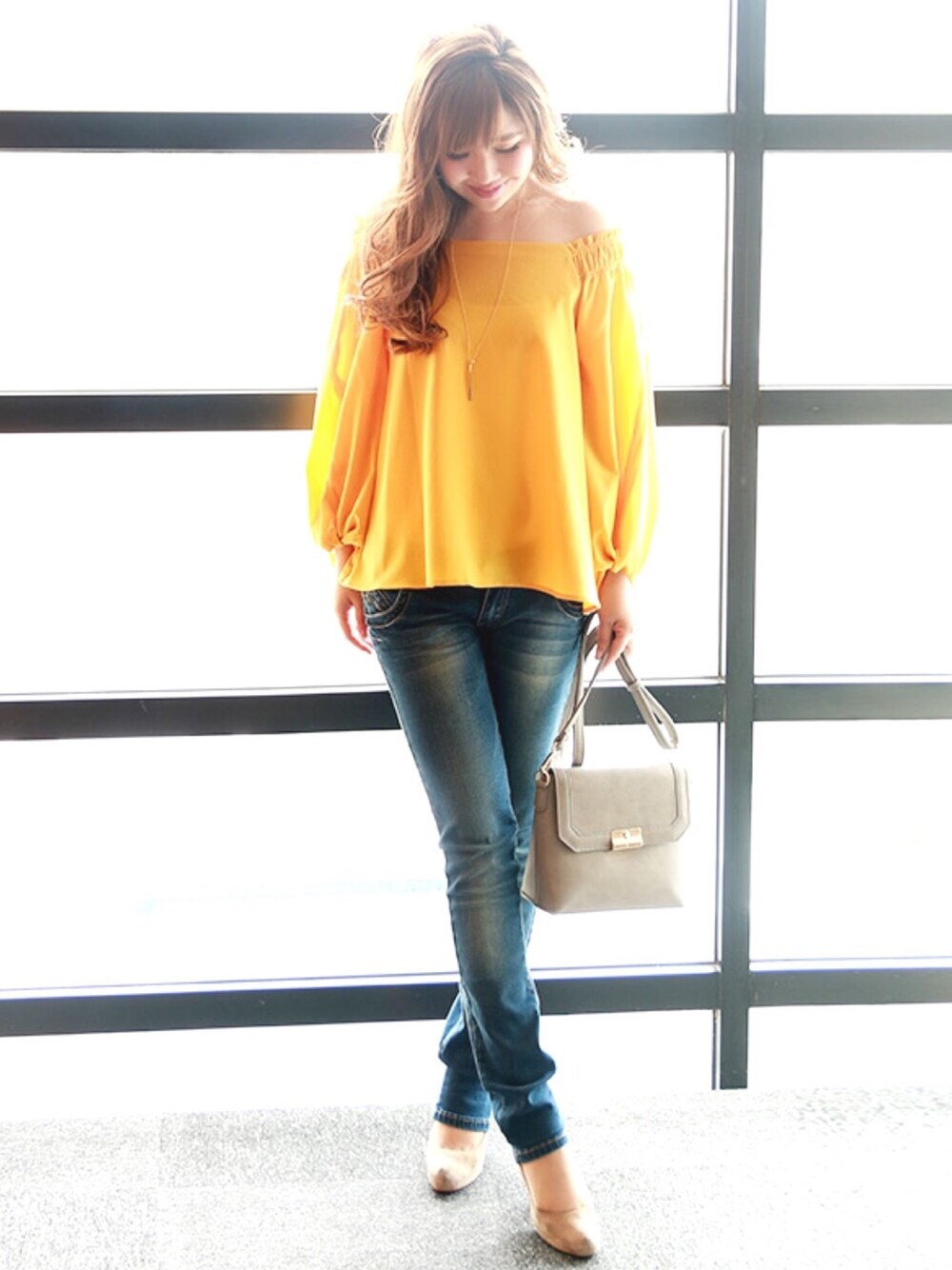 黄色いブラウスとデニムでシンプルにしてみました😎