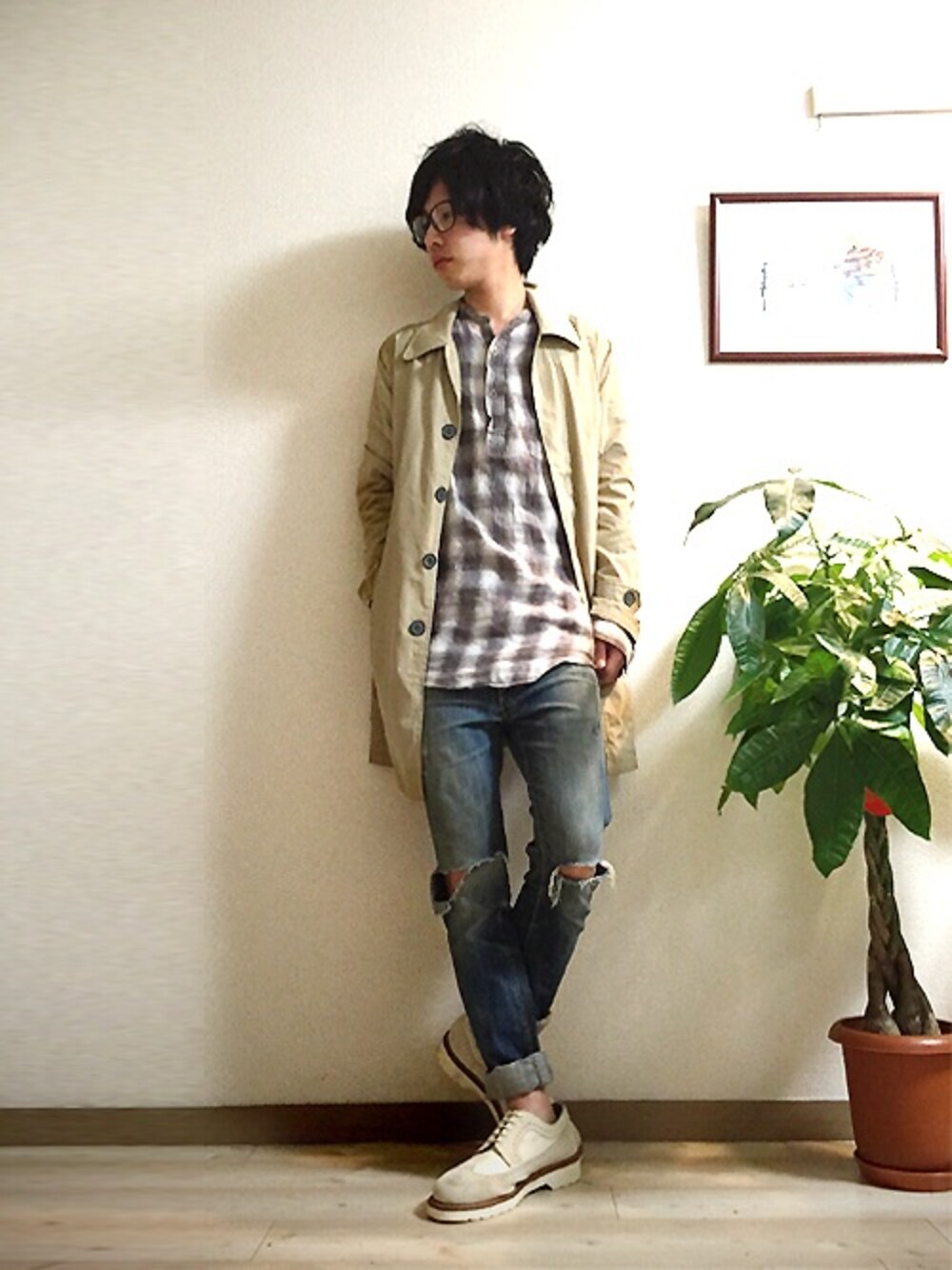 おぎのステンカラーコート「ナイロンステンカラーコート」を使ったコーディネート