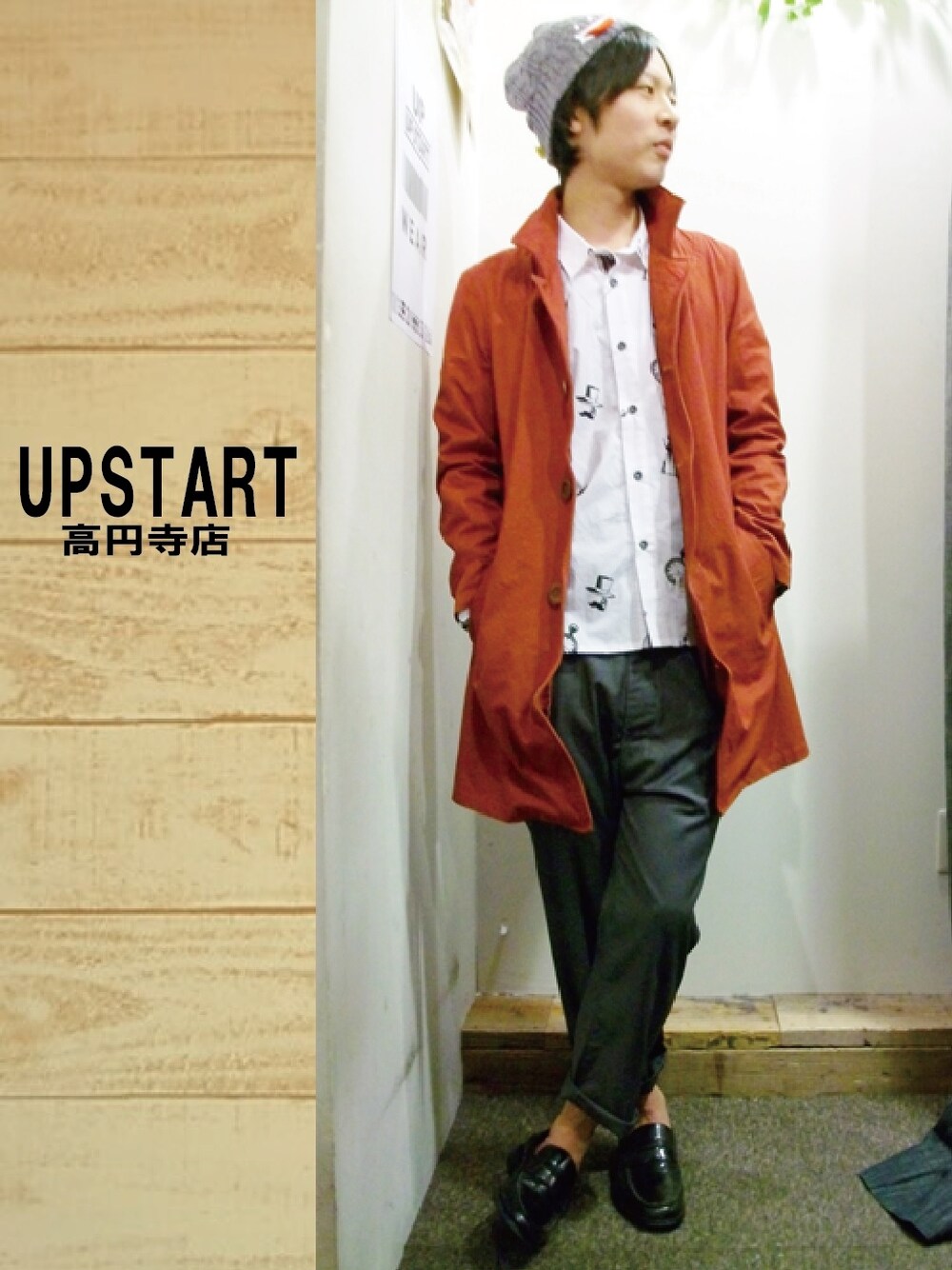 テーマは、某錬金術師風です! 懐中時計が足りませんでした・・・・ ウソです。 数ある色の中でもこの色であれば、画像のグレイからベージュからデニムから なんでもいけます! しかむ、コート以外はいつものでコーディネートで行けます! でも、コートの色で少しおしゃれに見えます! そして総柄シャツ!! 外しアイテムとして、これほど優秀な物はありません! サーカス柄も捨てがたいですね!! 今年のパンツは、アンクルカットのパンツですね!