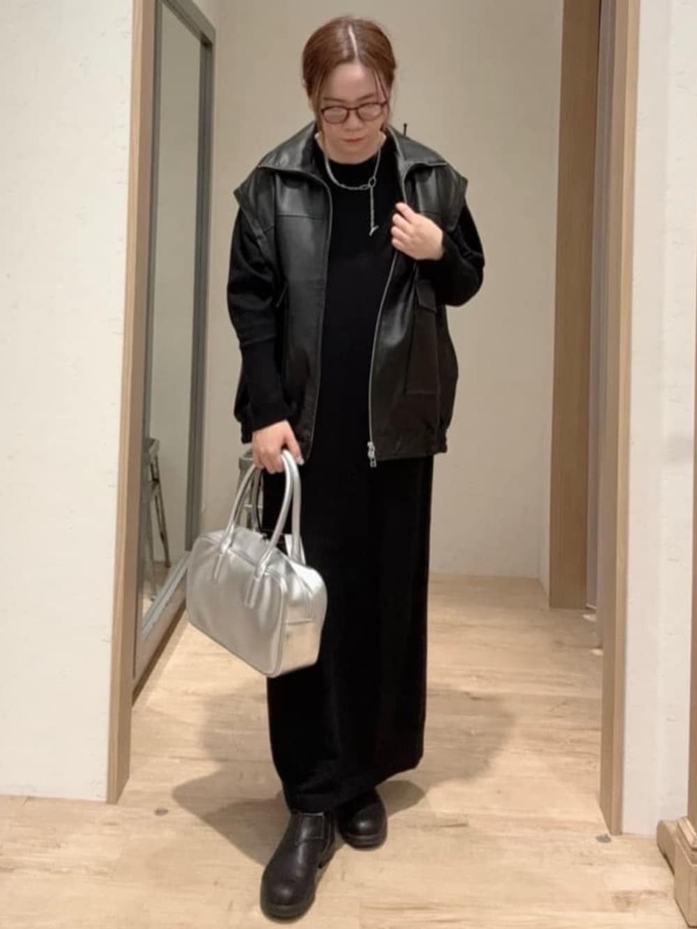 ogitypy(CIAOPANIC TYPY)のライダースジャケット「フェイクレザー2WAYスタンドブルゾン」を使ったコーディネート
