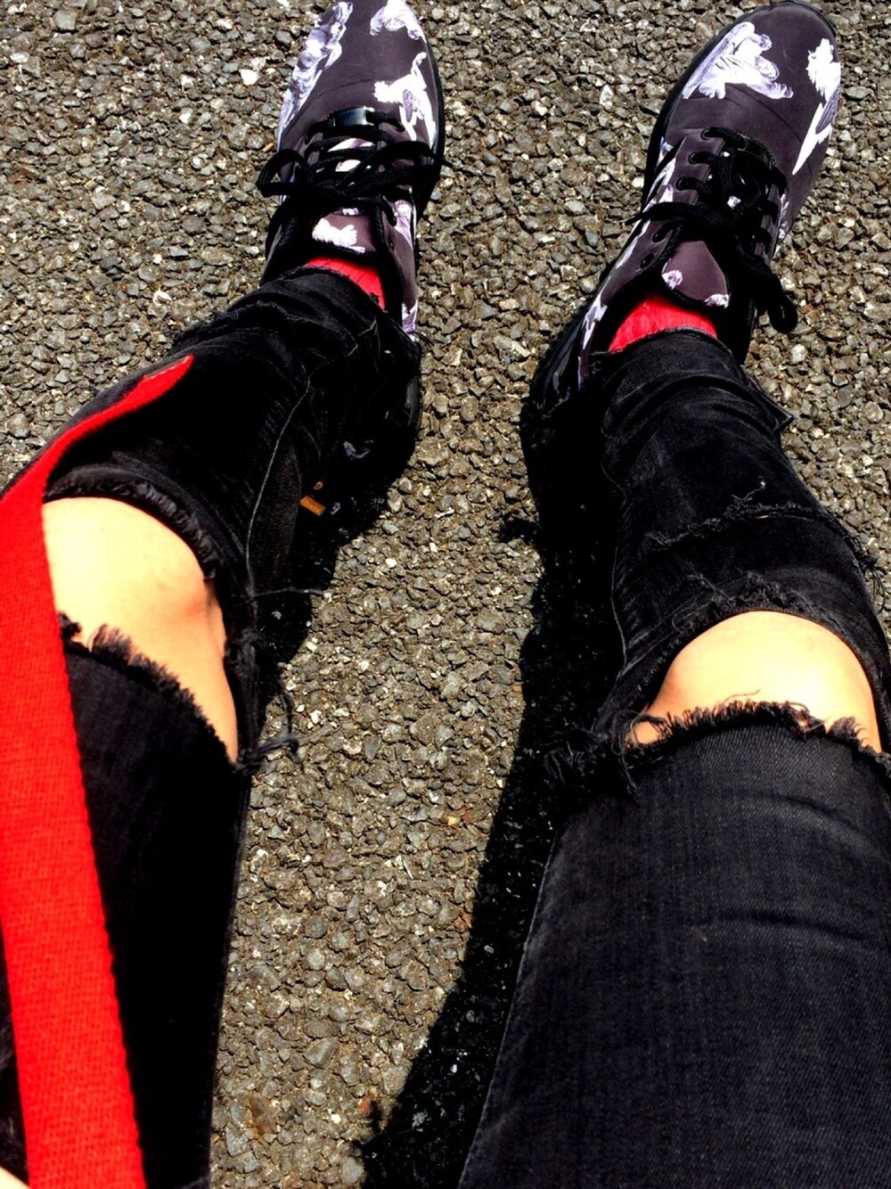 ブラック系のスニーカーを着用したメンズの夏コーディネートの1枚目の写真