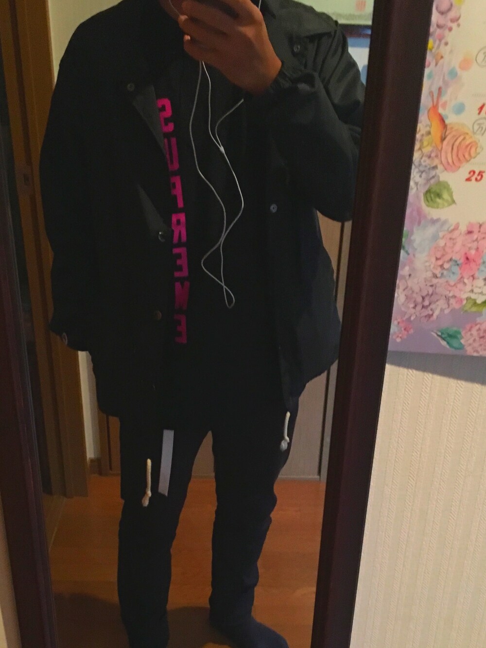 トップスはSUPREME×THRASHER2017SSコラボTです。 黒買ってみたのですが、案外合わせずらくて、赤のほうがよかったかなーと感じます。 その他初挑戦のガチャベルトやオールブラックなど、野心的に色々盛り込んでおります。 それでは ちんちん