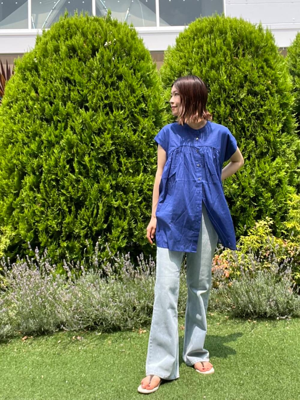 hana(DOORS ららぽーと新三郷)のデニムパンツ「ストレッチフレアデニムパンツ」を使ったコーディネート