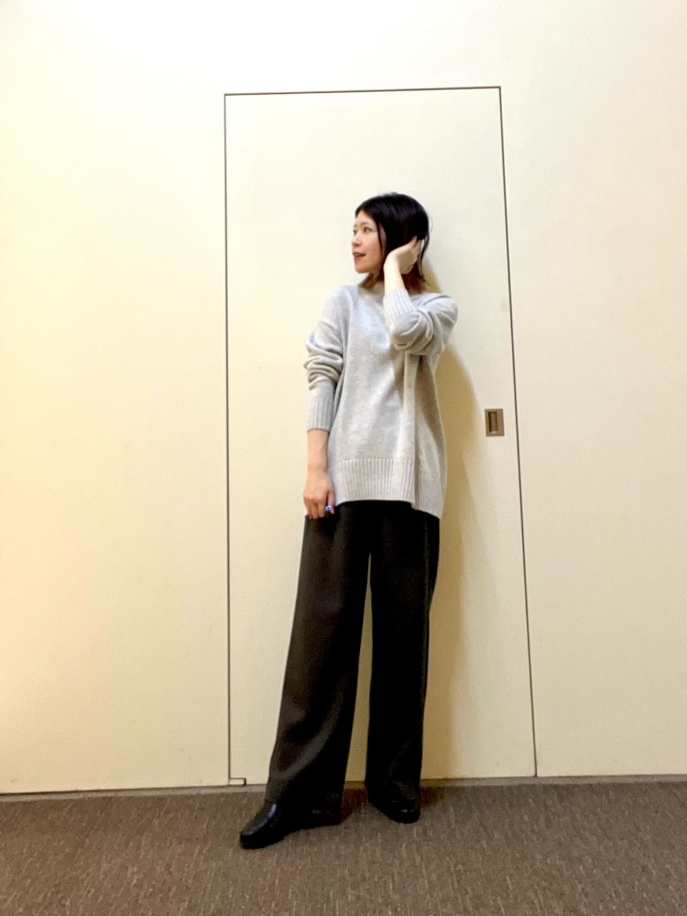 ハイネックニットはロング丈ですが軽い着心地🧶首周りがキツくないハイネックなのが嬉しいです◎シンプルですが1枚で様になるニットです!