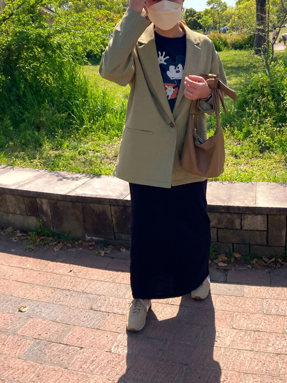 SALEでプチプラのジャケット🧥 色味可愛い💚 チラ見えなミッキーもお気に入り🐭