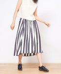 紐ギャザーのスカートは楽チンすぎるので、楽してスタイルアップしたいときにいいですよね🐵🎶 ストライプの絶妙な色味が好きです🐥