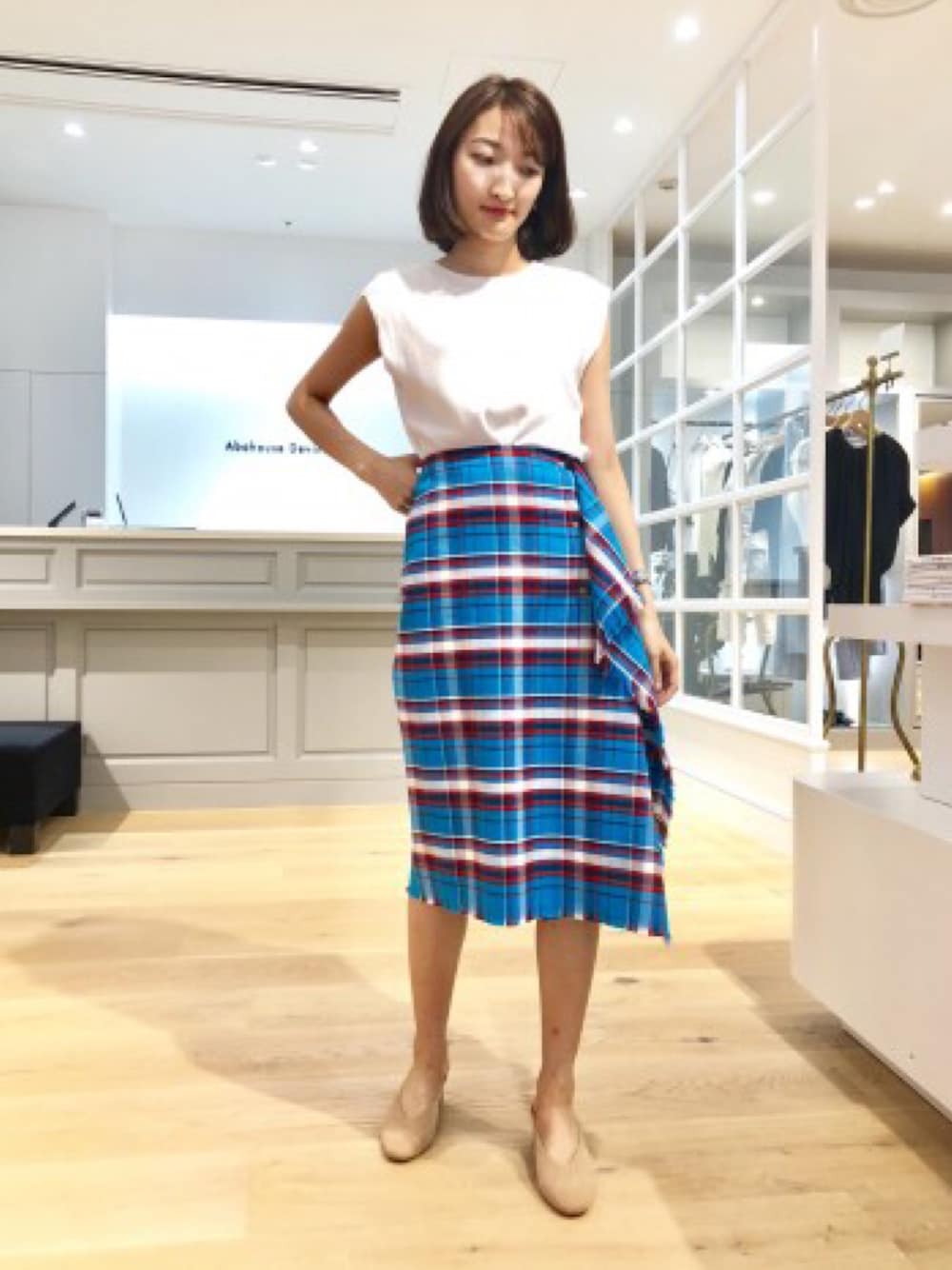ブランケットを巻いたようなラフなシルエットとカットオフされたデザインが可愛いです🐷❤️夏はサーマルと合わせて爽やかなコーデ🍍