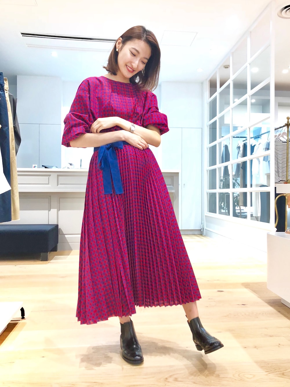 真夏は明るいワントーンが着たくなります🐿✨✨二種類のプリーツにこだわったスカートもお気に入り!目を引きます😳😳