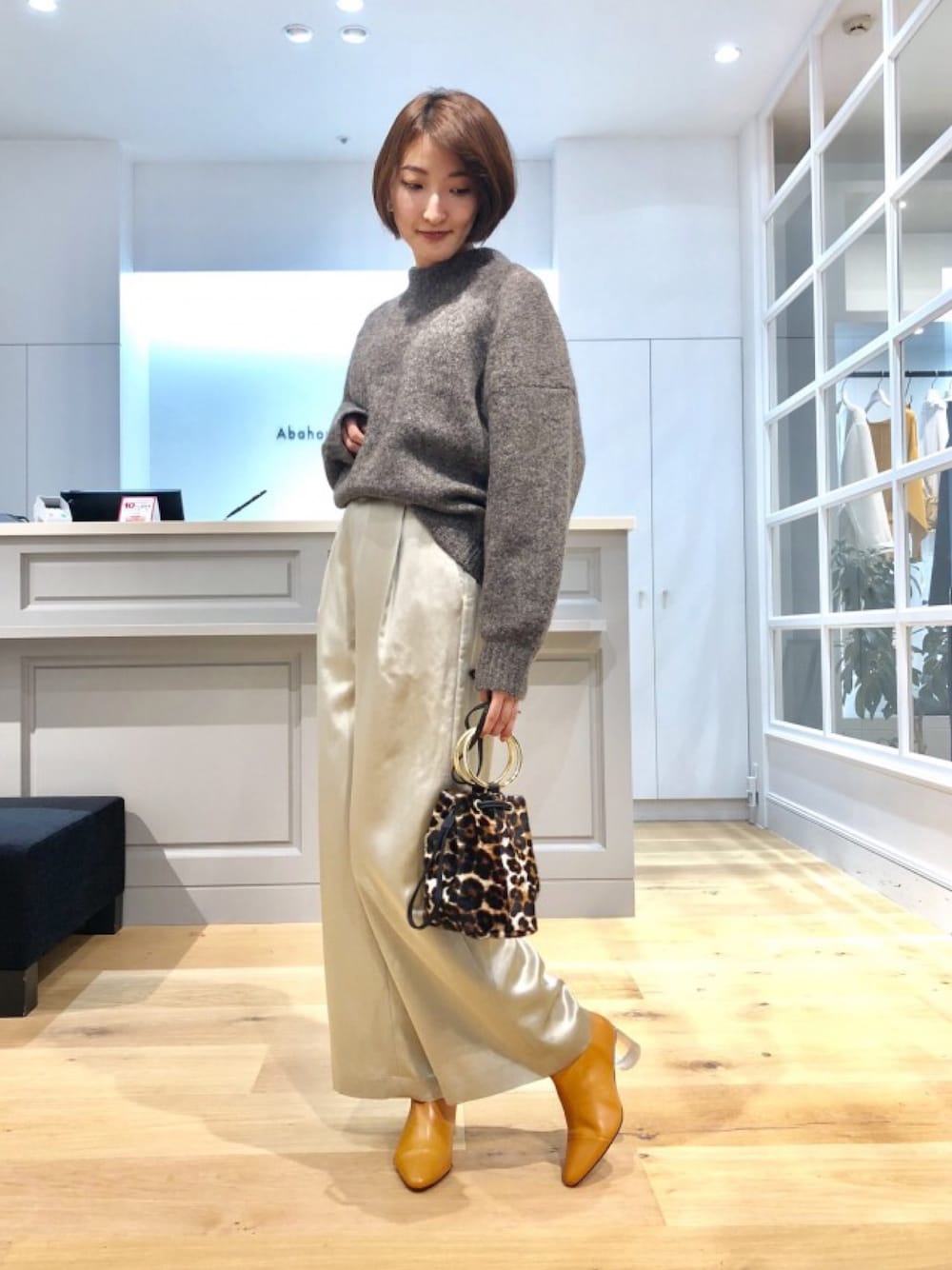 モヘアタムのニット🐻👕厚地のニットにはあえてツルッとしたお素材を合わせるのが格好いいですね🙃