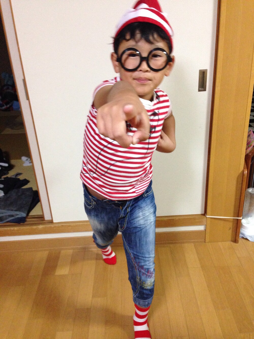 ハロウィン仮装 兄さん、ウォーリーを探せ!にしようかと思ってますが… お腹はちきれそうです(T ^ T) 肥満度アップしてました… もう、私じゃ持てません
