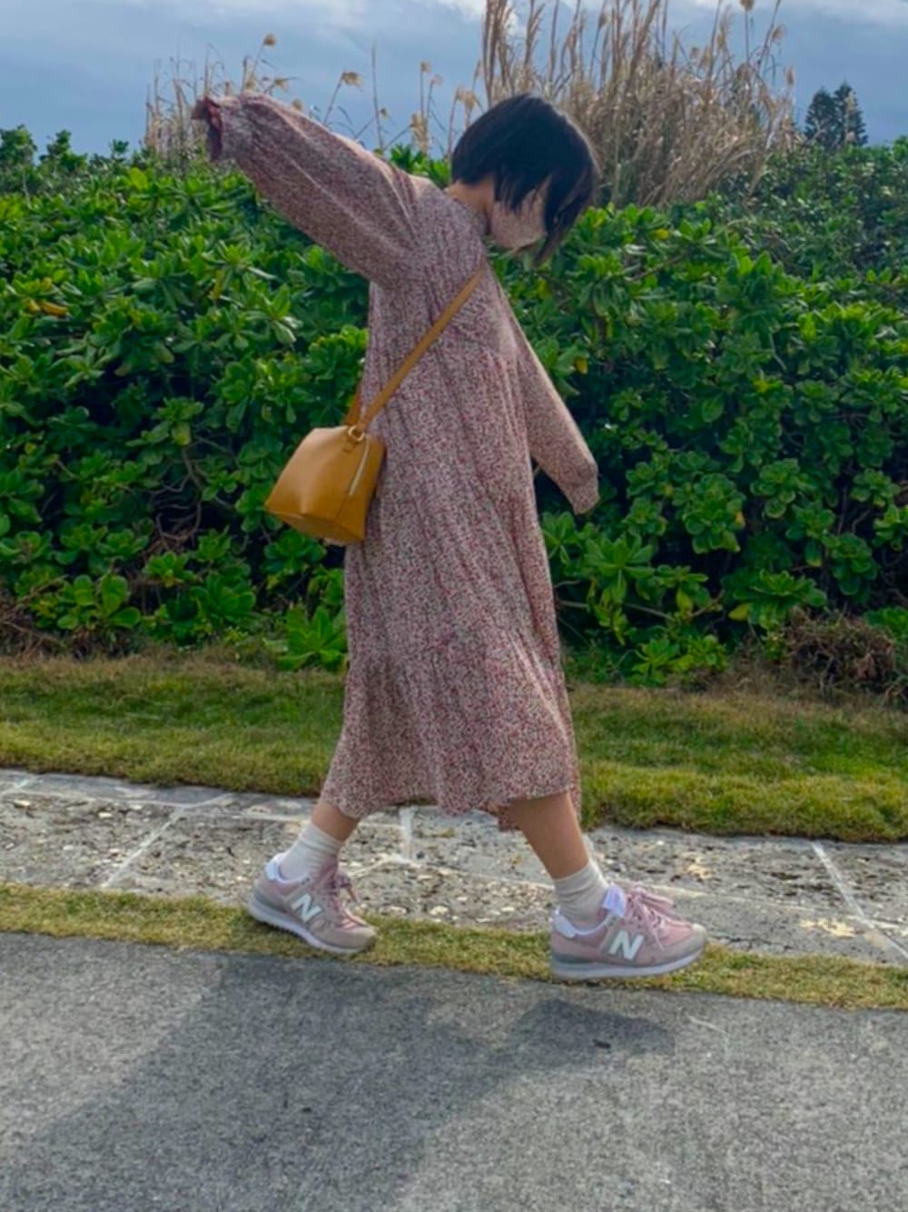 ピンク花柄コーデ。
