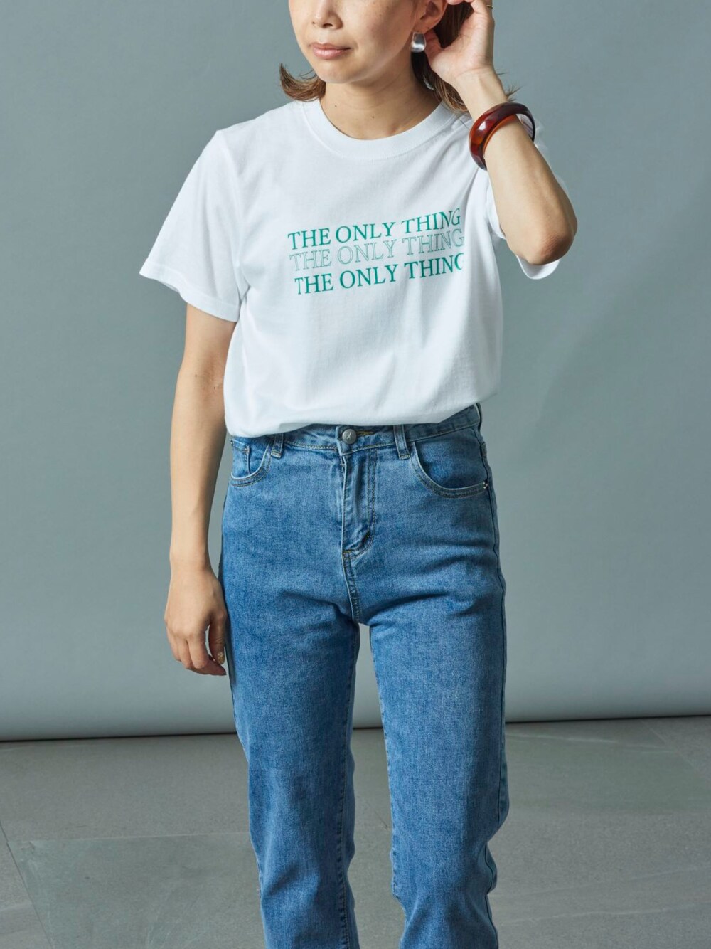 setup7_women(SETUP7)のTシャツ/カットソー「キレイ目ロゴTならこれ。きちんと感がトレンド!【MAISON BREEZE】THE ONLY THING メッセージプリントTシャツ」を使ったコーディネート
