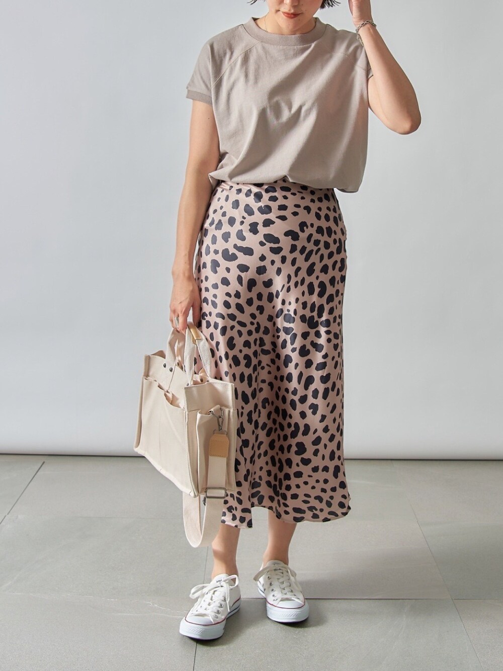 柄物もワントーンで合わせると落ち着いた印象に☺︎
