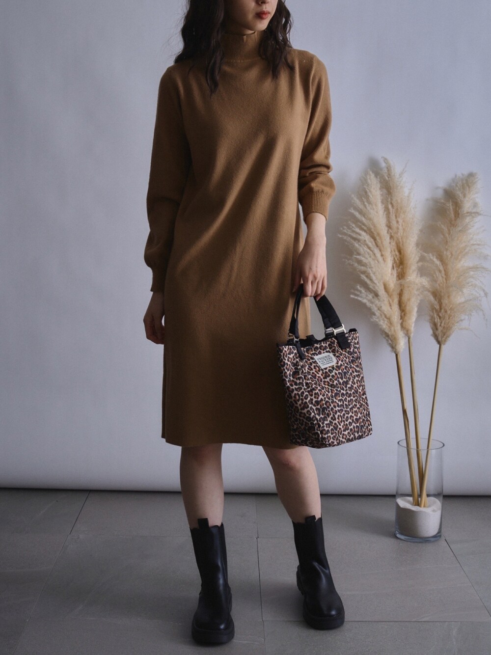 ニットワンピースのワントーンコーデ