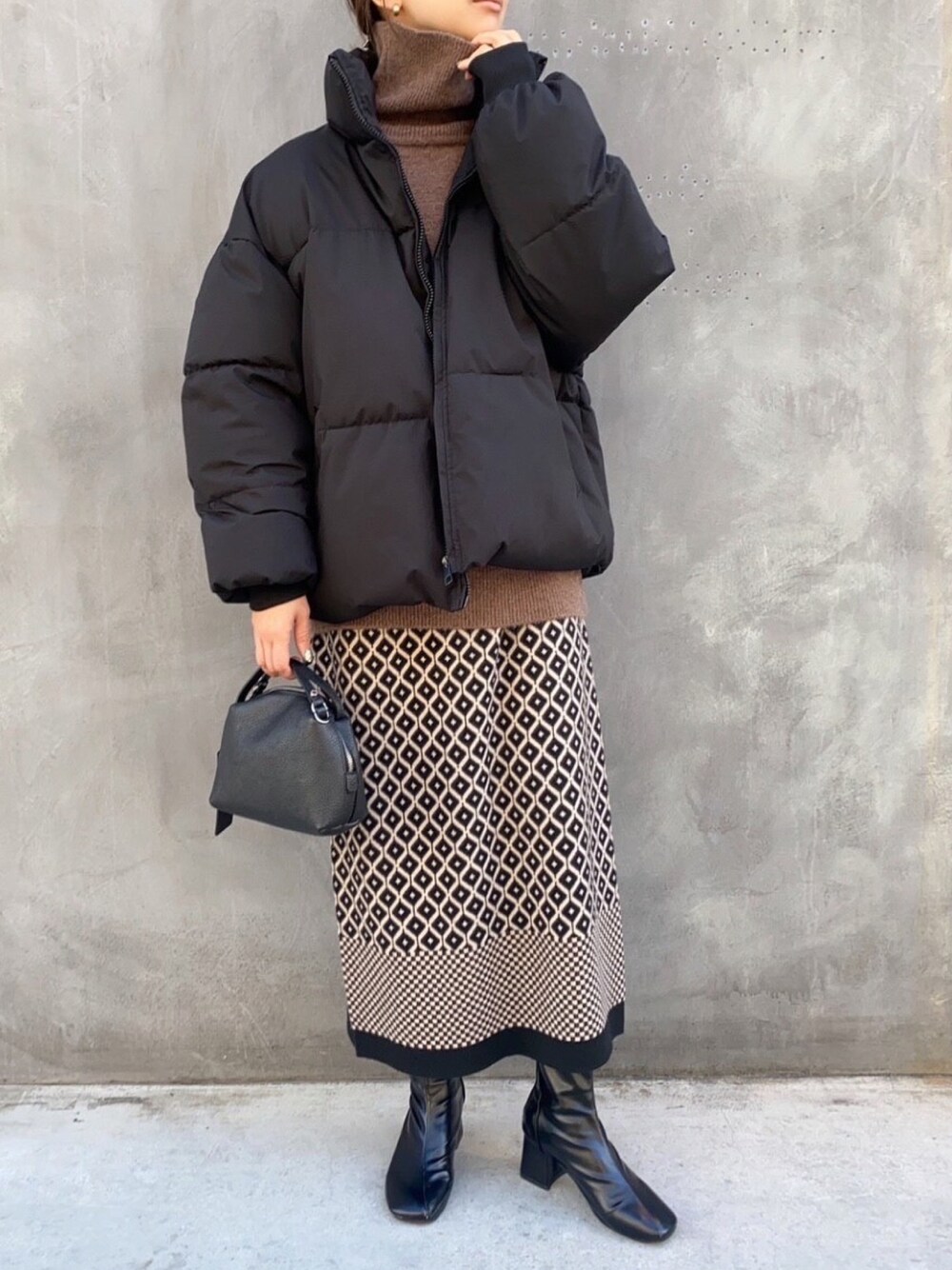大人っぽく、ブラックのダウンにレトロなスカートをさり気なく合わせました✨
