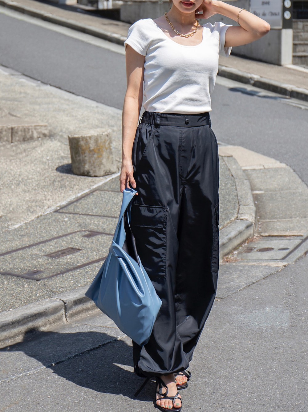 setup7_women(SETUP7)のトートバッグ「2WAYの持ち方で印象早変わり♪【SETUP7】PUレザーエコバッグ ショッピングトートマルシェバッグ」を使ったコーディネート