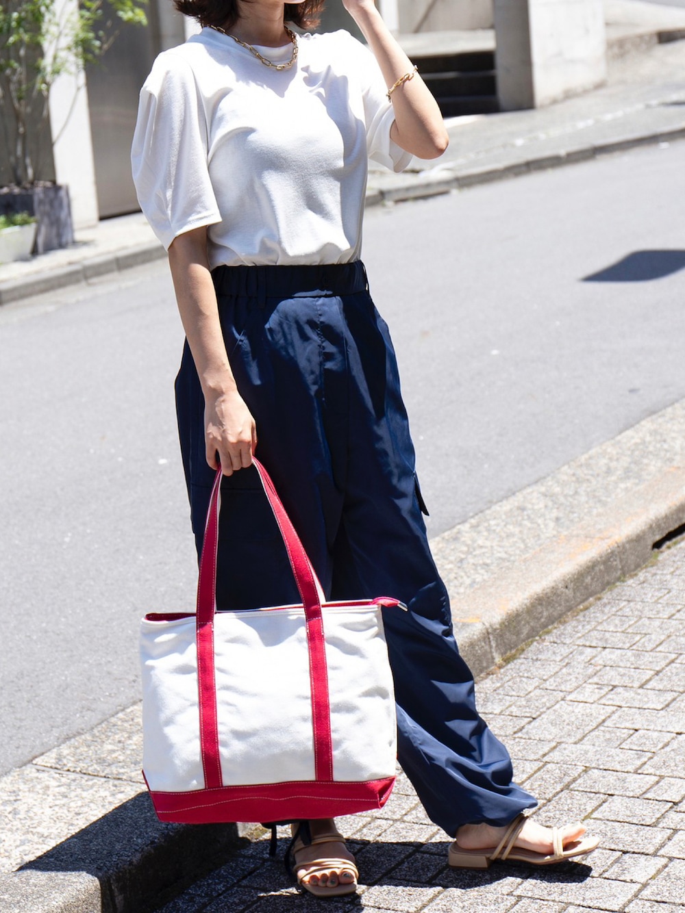 setup7_women(SETUP7)のトートバッグ「13色から選べるジップ付き、ママさんトート【SETUP7】ユーティリティキャンバスグローサリー ジップトップトート」を使ったコーディネート