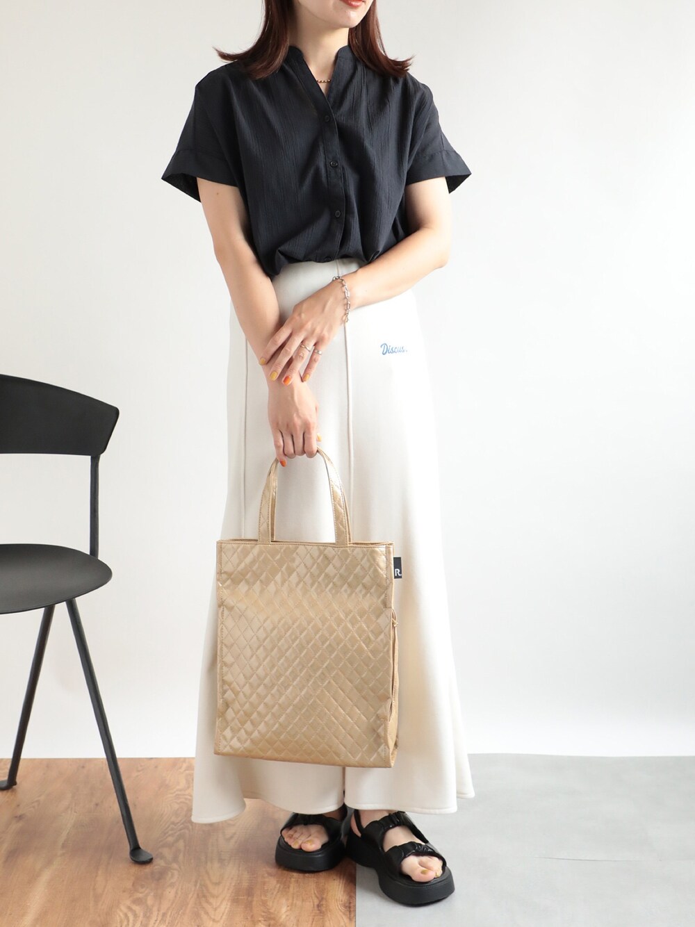 モノトーンコーデにゴールドのバッグを合わせました♪