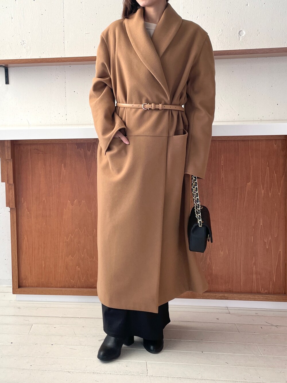setup7_women(SETUP7)のチェスターコート「谷まりあさん着用!SWEET掲載商品【SETUP7】ソフトリバーコート風 ガウンコート Relax TOTE ME Coat」を使ったコーディネート