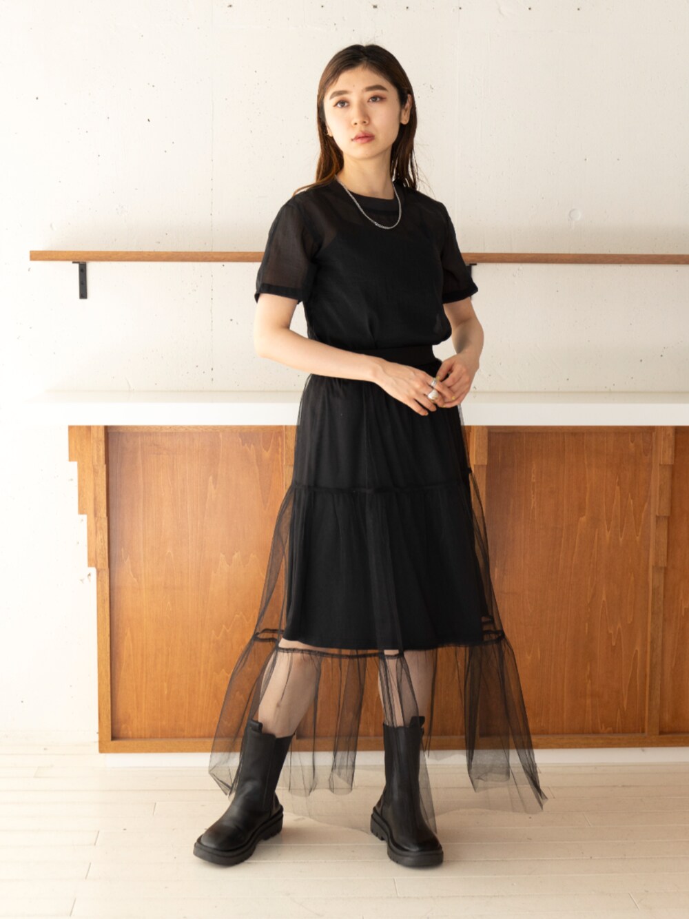 カジュアルスタイル 春におすすめのチュールスカートです! モデル身長:160㎝