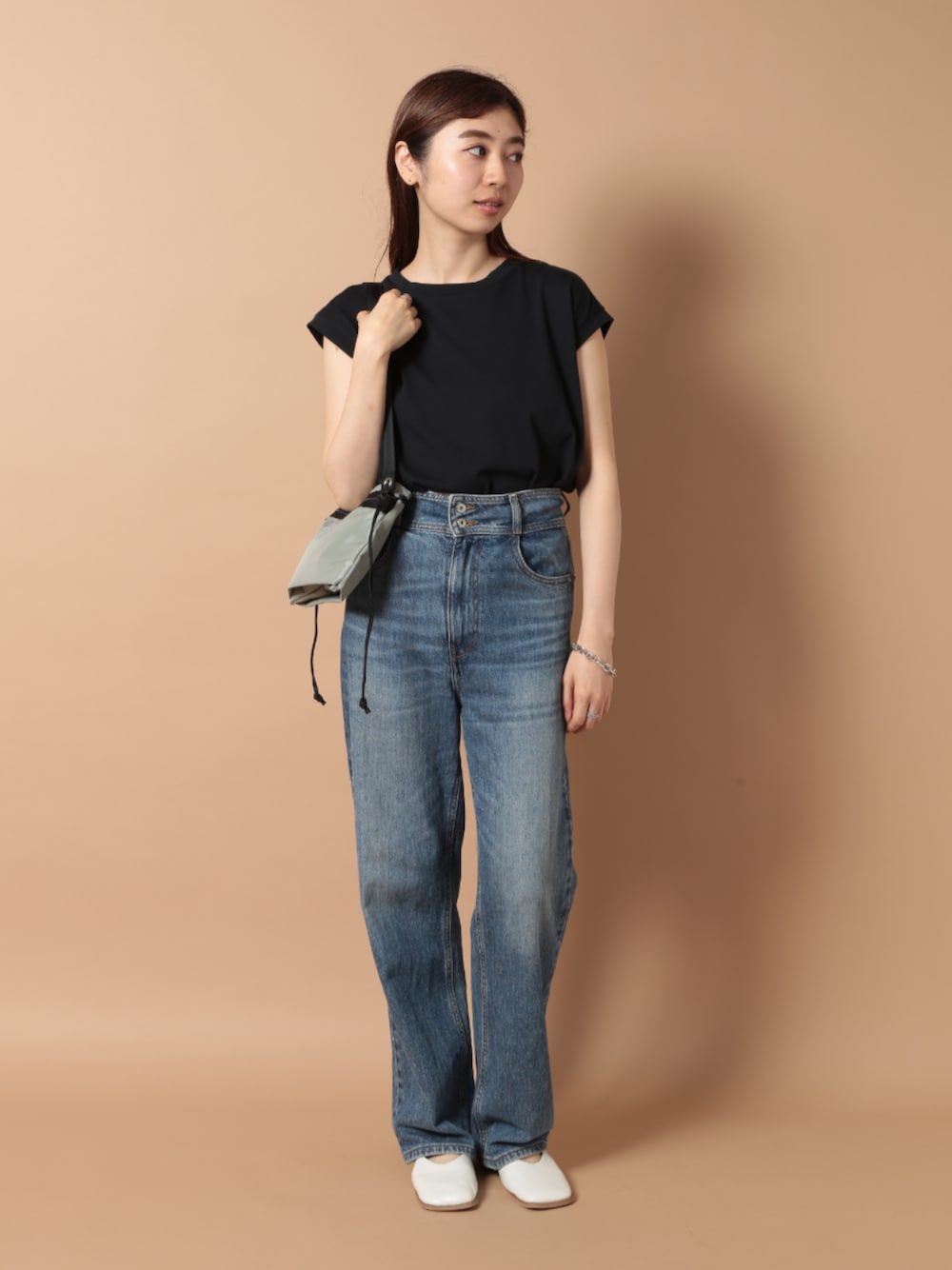 setup7_women(SETUP7)のTシャツ/カットソー「キレイ目Tシャツと言えばこれ!華奢見えのモックネックTee♪【MAISON BREEZE】大人のモックネックラグランTシャツ」を使ったコーディネート