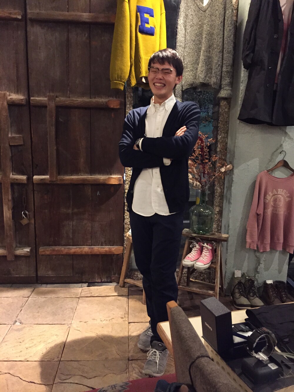 最近古着屋で働き始めたきれい目モンジ。アウトドアとトラッドのミックスがかっこいい。