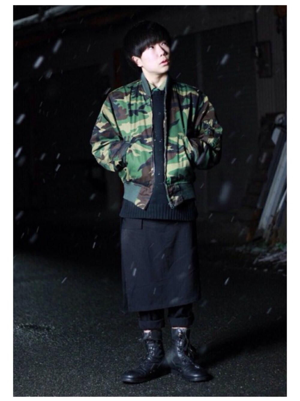 outer:used knit:RL shirt:RL tie:WACKO MARIA pants:LIMI feu shoes:number(N)ine エプロン付きスラックスとアイドアップで 野暮ったいアウターとバランスを。