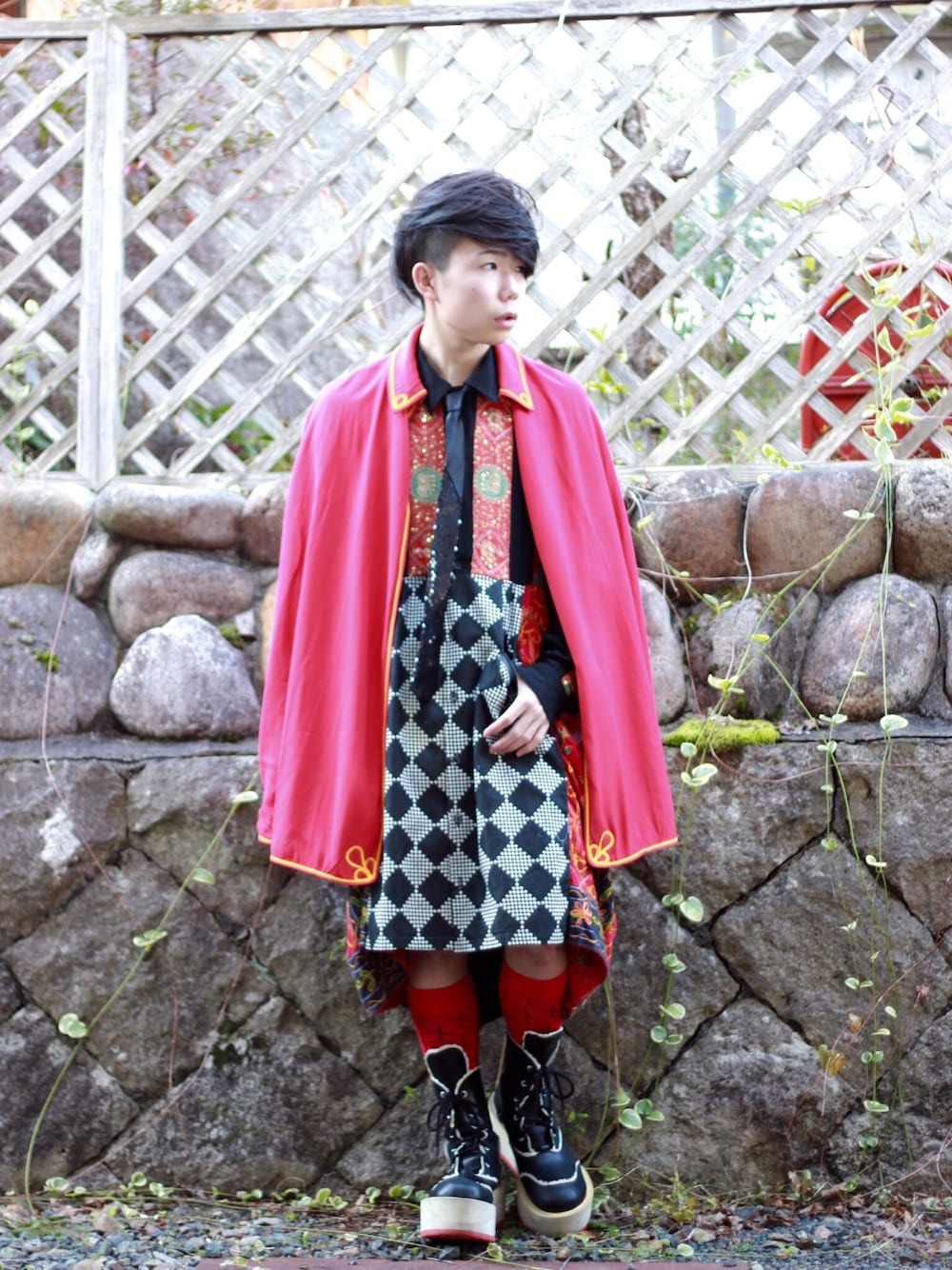 cloak:vintage shirt:WOW design shoes:belly button 「ファッションチーム」ってのがストリートにはあります。 (そんな環境にいるのでこの話はそのコミュニティ“外”の人にこの存在を知っていただくことを目的として話します。内輪の人からしたら聞き飽きた内容かもしれません…。) やはりある程度都心での話になりますが どこからともなく集まってきたファッションが大好きなティーンエイジャー(とは限りませんが)達が集まってチームを名乗り、自分達のファッションを発信していくわけです。 僕が所属している 「ペルソナリタ」もその一つ。 拠点は若者の街、「アメリカ村」 そして「広島」。 もとからあったチームを再組織して随分経ちます。 Twitterフォロワー数はもうすぐ2000人。 総スタイルフォト数は約150。 メンバーは人気古着屋のスタッフだったり、はたまた雑誌のスナップ常連だったりします。 Twitterアカウント @perso_osaka