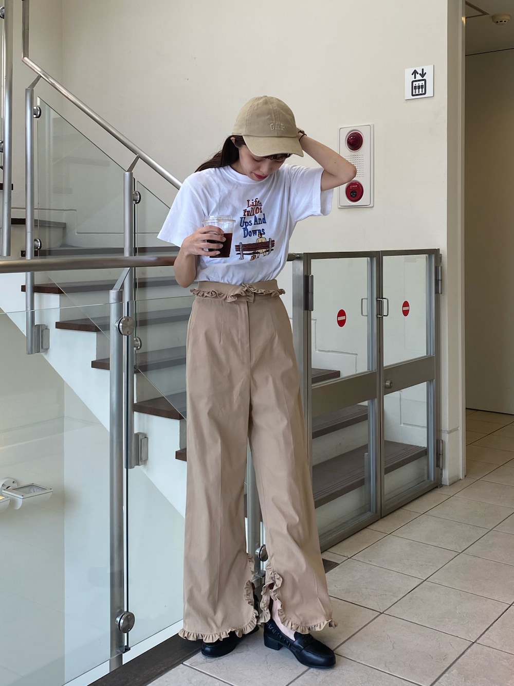 フリルのついたパンツにTシャツとキャップでカジュアルダウンに🤍 🎪Instagram @__ohinano__ @miro_amurette