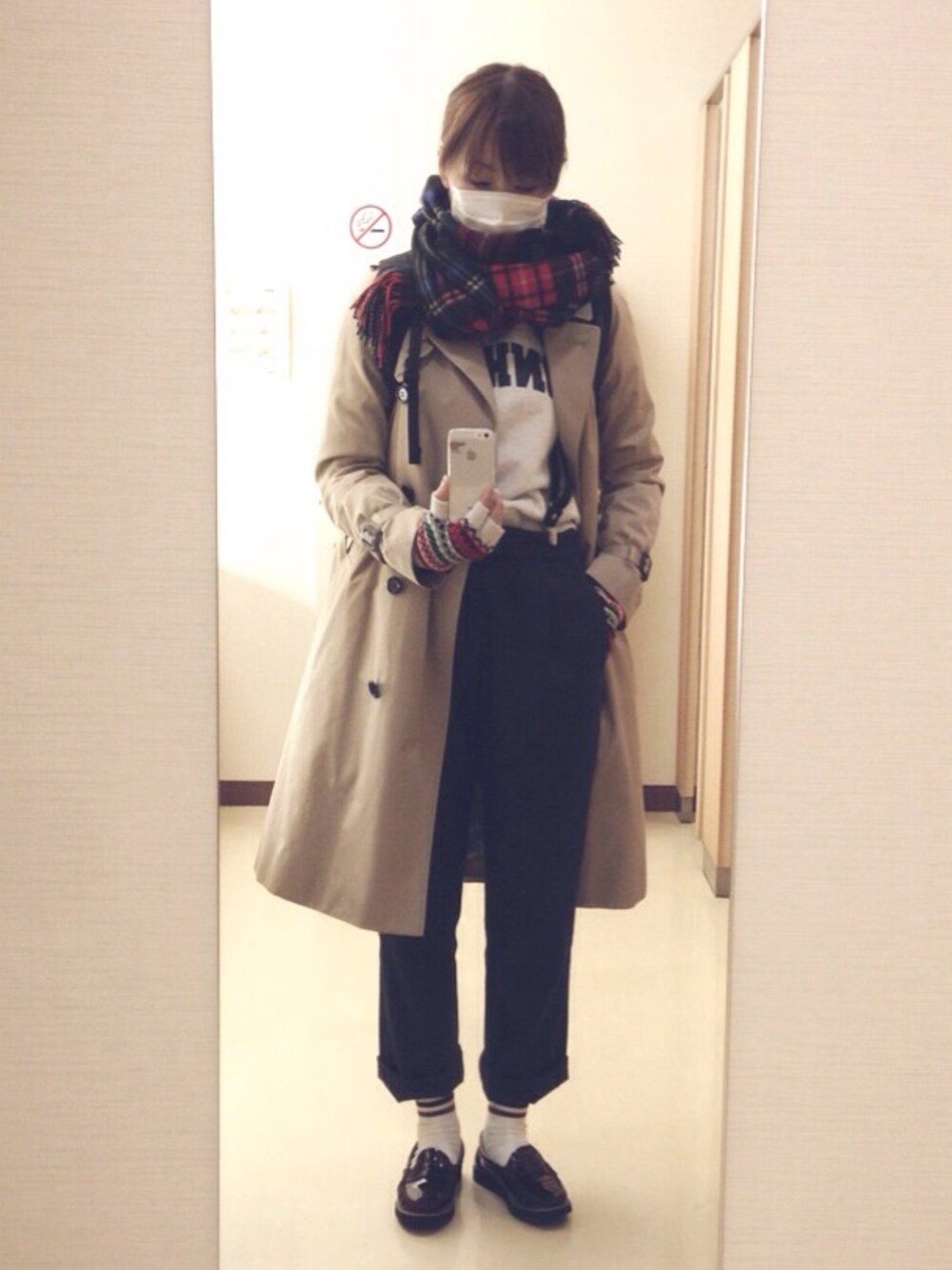 韓国の道端で売ってる1000ウォンソックスいっぱい買ってきた( ^ω^ ) おみやげにもいいよね( ^ω^ ) トレンチの中にロングカーディガン着てるからモッコモコw