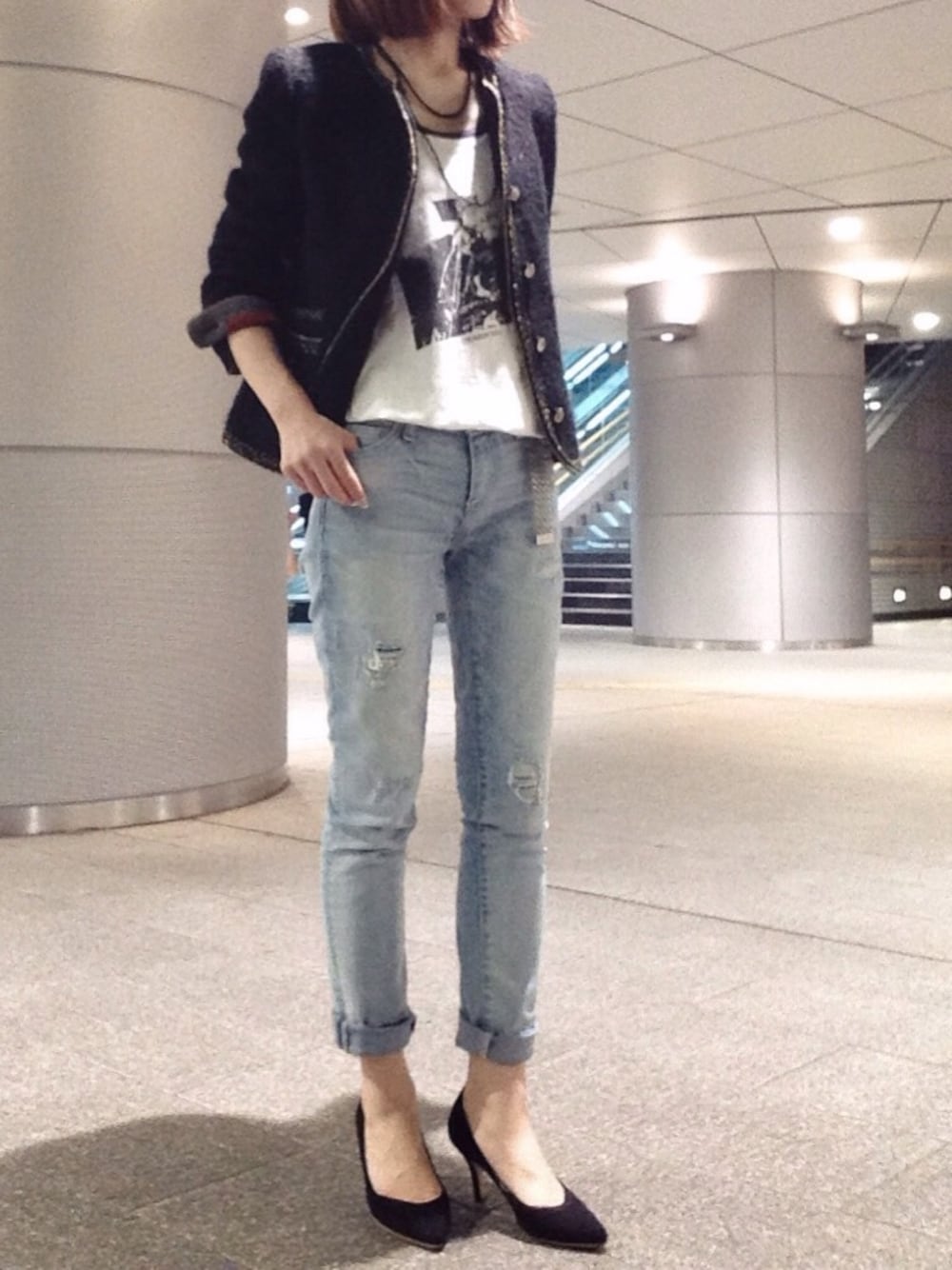 今日はTシャツにツイードジャケットだけで充分過ごせる陽気だったね〜(✿´ ꒳ ` )♡ 今週はこのままあったかいのかな〜( ^ω^ ) 最近スニーカーばっかだったから 久々にヒールを👠 脚が退化しそう...∑(゚Д゚)