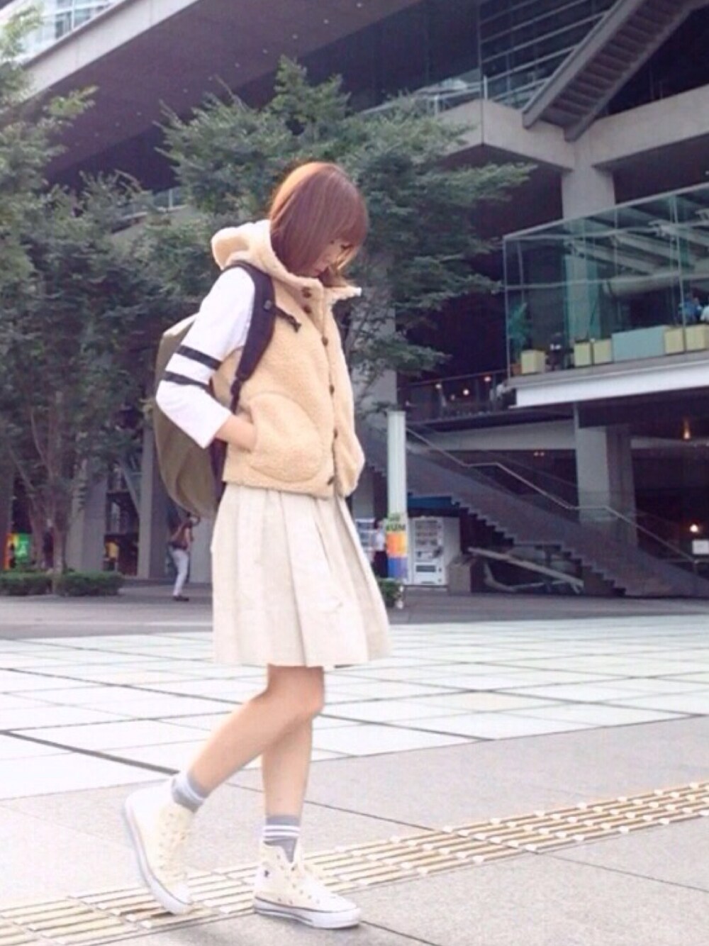 やっとこのベストが着られる季節になったよ( ^ω^ ) 去年カモフラ柄を買おうと思った時にはすでにサイズがなくて..😢 今年はくるみボタンでこれまた可愛くて12サイズもあったから即買い😍 カラーもとことんヒツジ🐑なベージュw😂