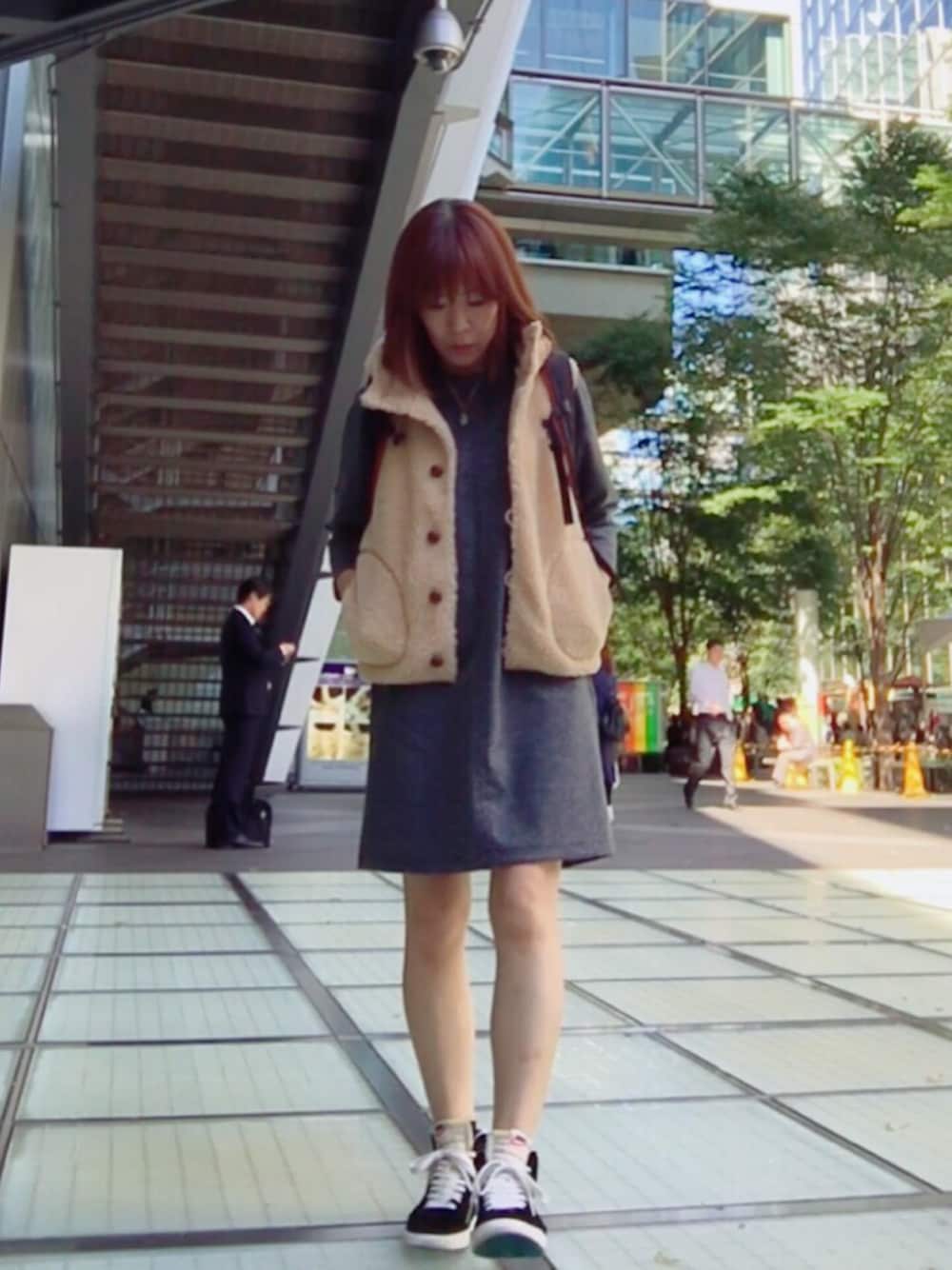 おまきのベスト「<15秋冬>【Gymphlex(ジムフレックス)】ボタンパーカーベスト ボア」を使ったコーディネート