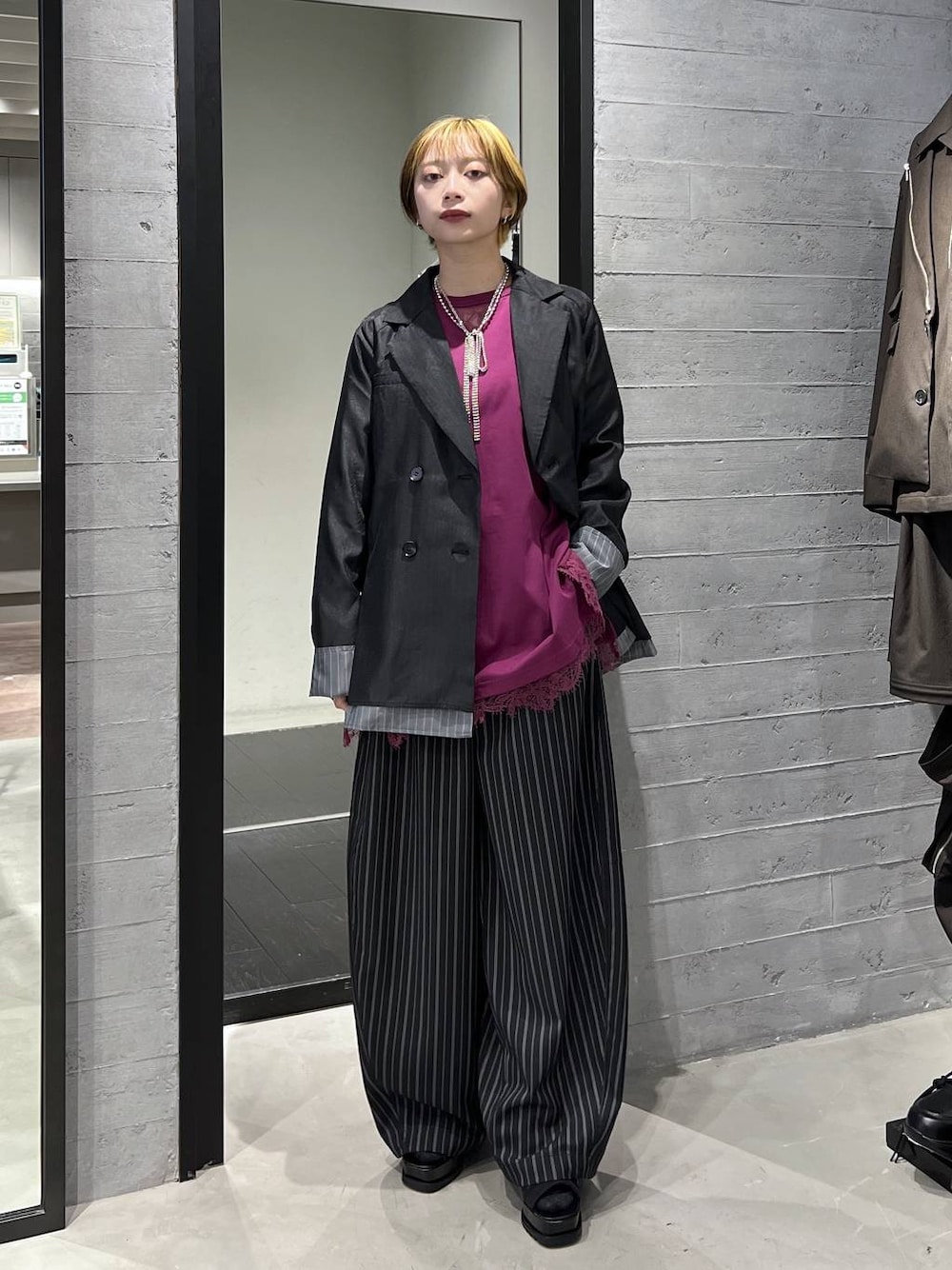 ⬇️インスタにもスタイリング更新中⬇️ 《154cm/骨格ウェーブ》 きれいめカジュアルスタイル✌︎ パンツはメンズアイテムを着用👖 紐で上めに履き、ウエストを一回巻いてます◎ お悩み・ご相談等あればDM、 ルミネ町田店でお待ちしてます♡