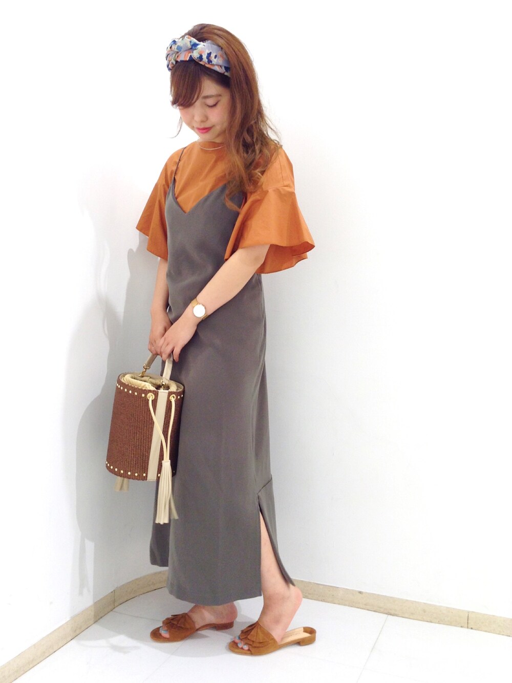 キャミワンピをゲット🤗何をレイヤードするか、楽しみ〜〜🙌🏻🌟 いつもあんまり選ばない色の組み合わせにしてみた〜〜🐱
