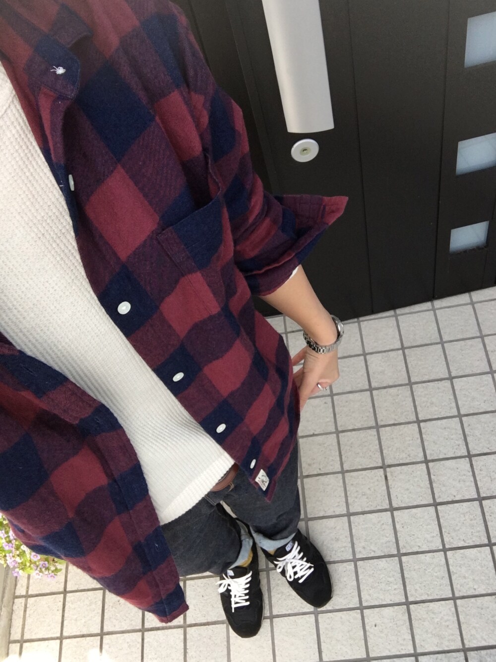 yum!сӧќє❦のシャツ/ブラウス「インディゴチェック オーバーシャツ_#」を使ったコーディネート