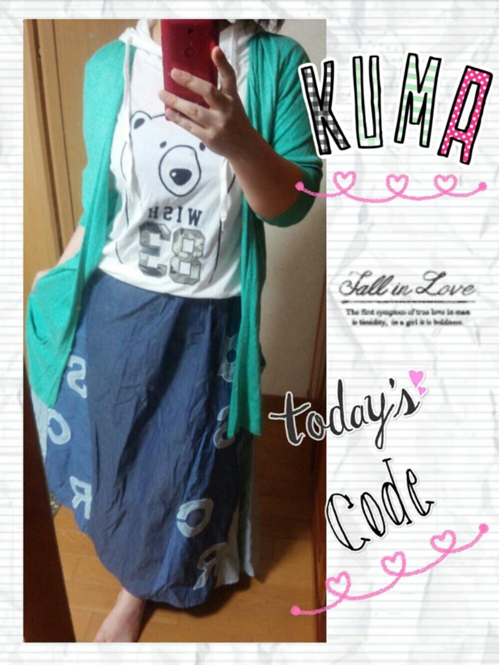 くまとか動物の柄とか好きなのでよく買ってしまいます。 このクマもゆるくて好きです。 あとこのスカート凄く可愛いし、長さもいい感じで歩くたび揺れるから女性らしさが出ますね。 ただ私より小さい人は下についちゃうかも。 一応胸下まで上げてのこの長さなので、ヒールいりますね。 いつもいいね、お気に入りありがとうございます!