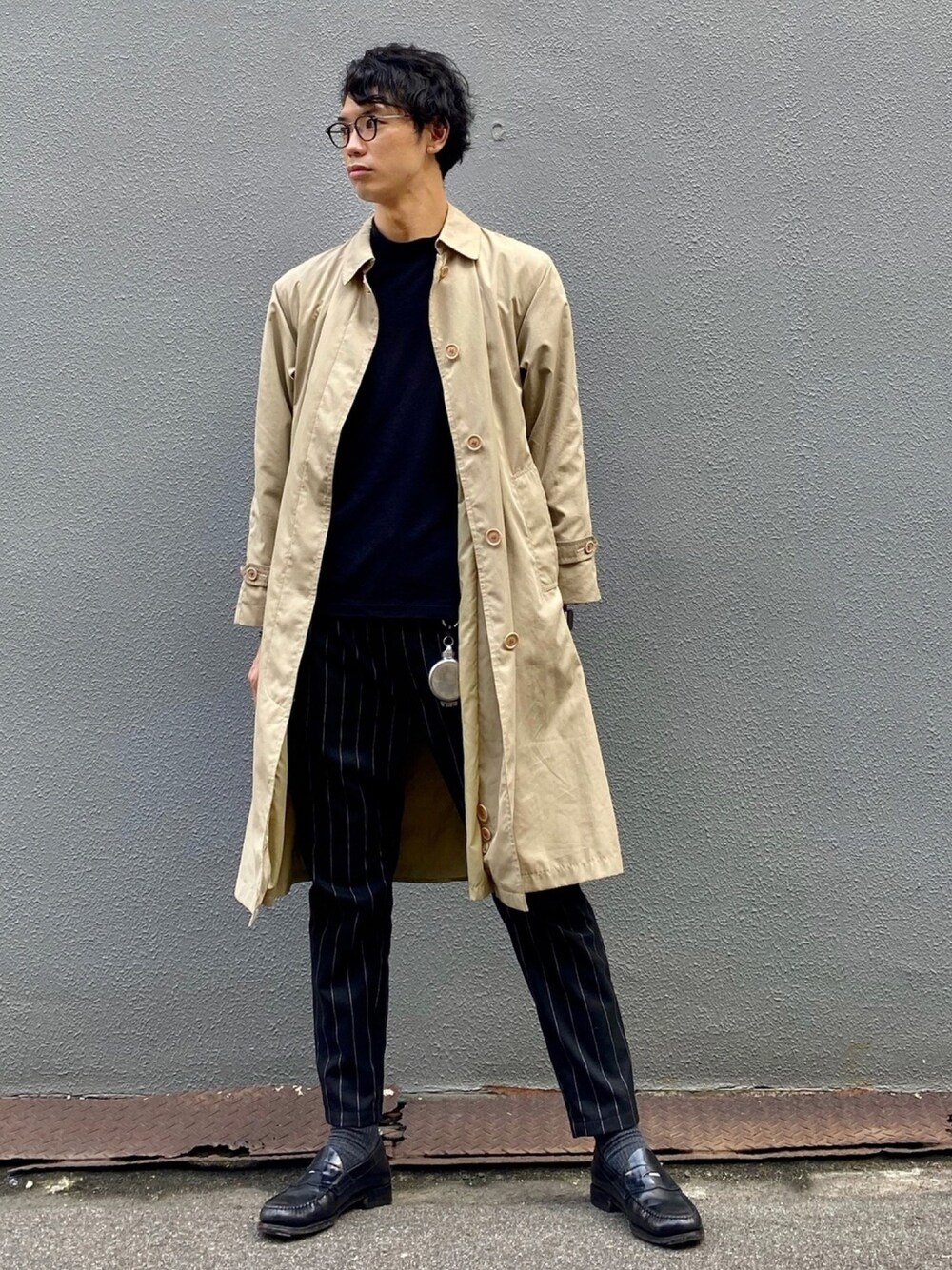 ビーンズ おいちょのステンカラーコート「ステンカラーコート ベージュ 」を使ったコーディネート