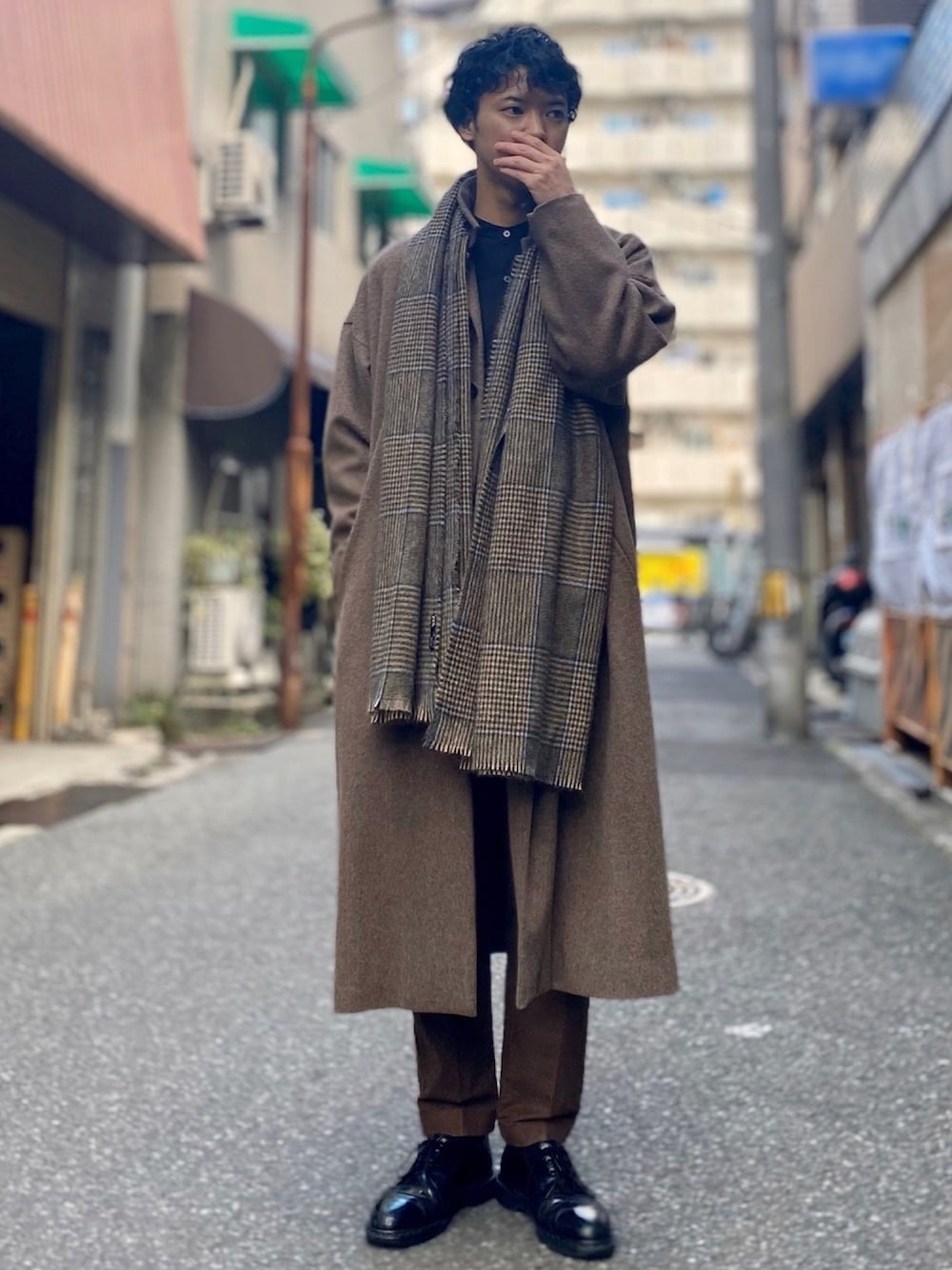 ビーンズ おいちょのマフラー「ストール ブラウンチェック」を使ったコーディネート