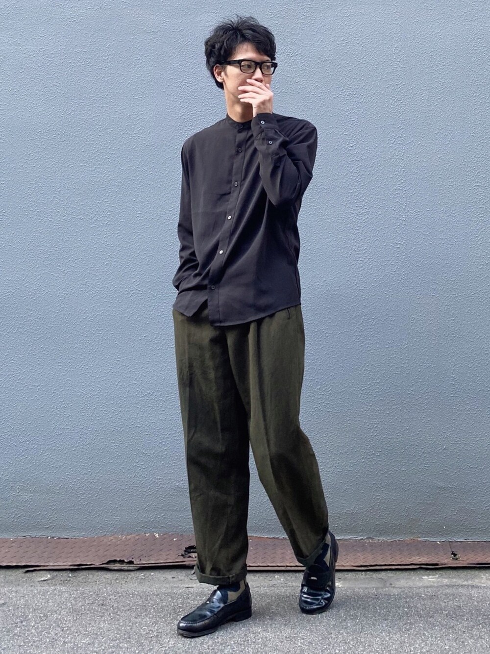 ビーンズ おいちょのシャツ/ブラウス「【Nilway】ドレープポリトロバンドカラーシャツ」を使ったコーディネート