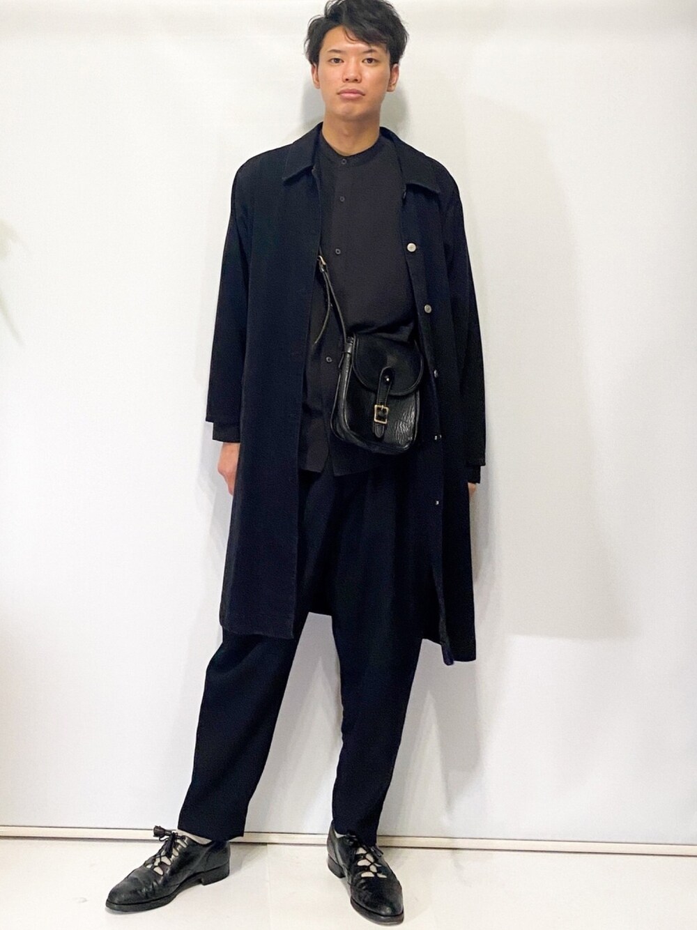 ビーンズ おいちょのステンカラーコート「ステンカラーコート ブラック」を使ったコーディネート