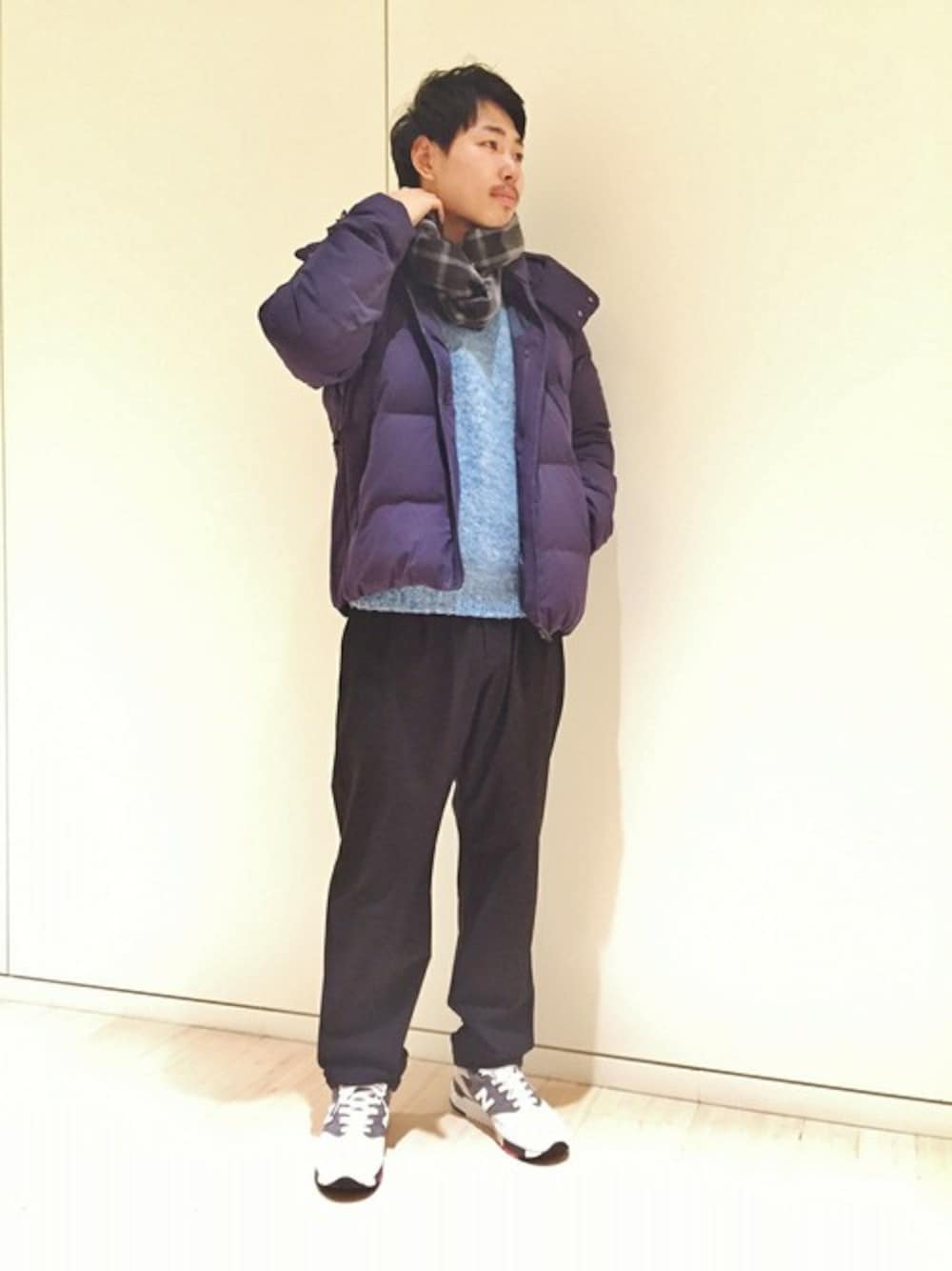 鮮やかなブルーのニットは、くすんだ色が多い冬のコーデを鮮やかにしてくれます。 スポーティーな印象の強いアイテムも、ニットの素材感で暖かな冬を過ごせます。