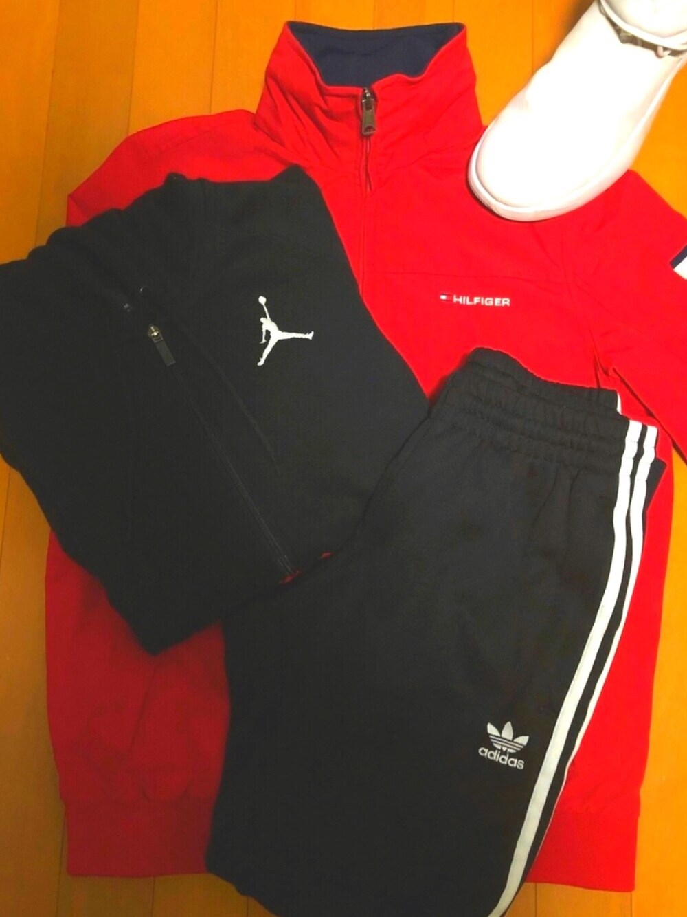 お久しぶりです。 まだまだ寒い日が続きますが、皆様どうお過ごしですか?😳🍃🌀 私は春休みに入りまして、バイトに明け暮れています…💦💦💦 免許をまだ取得していないため、バイト先までマウンテンバイクを20分ほど毎日こいで通勤してます。そんな時にもTOMMY HILFIGERさんのナイロンジャケットは風を通さず、暖かい。また、この鮮やかな赤がカッコイイ…😎😎😎 AIR JORDANさんのパーカーは私服でも運動時でも使える万能物!!!いつもお世話になってます😂🙏💗 adidas originalsさんのトラックパンツはカッコイイのは言うまでもなく、ストレッチが効いて動きやすさ100点です!💯 .* 最後にお気に入りのシューズ!!もとはバスケで使うために購入したのですが、靴擦れが起こってしまい、外靴として使ってます! まだまだ勉強中です📖 皆様のコーデを参考にこれからも自分を磨いていきます🙋♂️🙋♂️ 長々とすみません。読んでいただいてありがとうございます。🙇🙇 では、また投稿しますのでよろしくお願いします😊🙏🌟