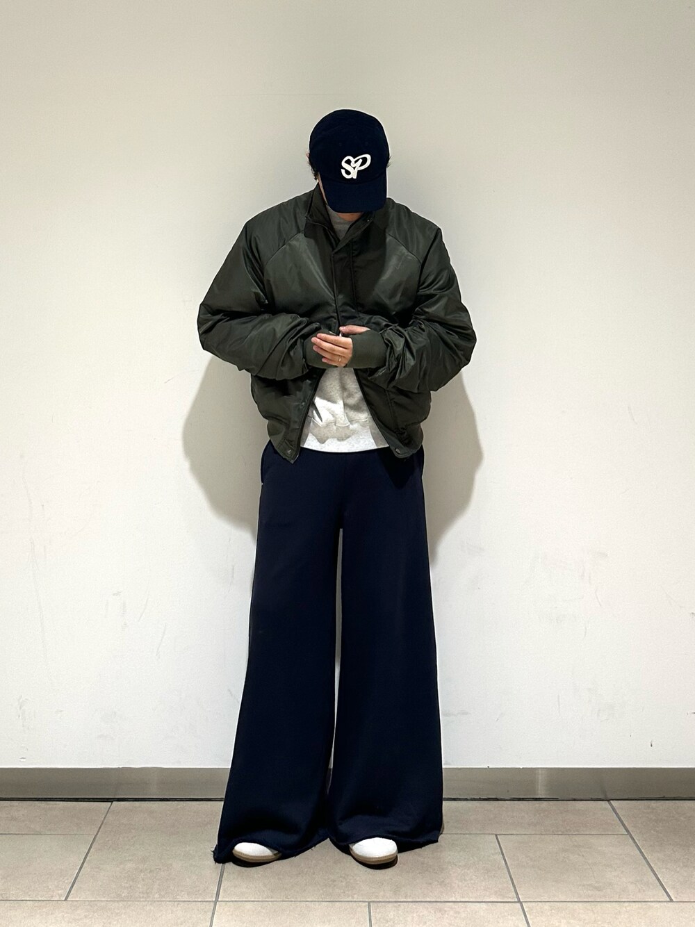 サムホール付きのアウター◎ ネイビーとホワイトのバランスがポイントです!