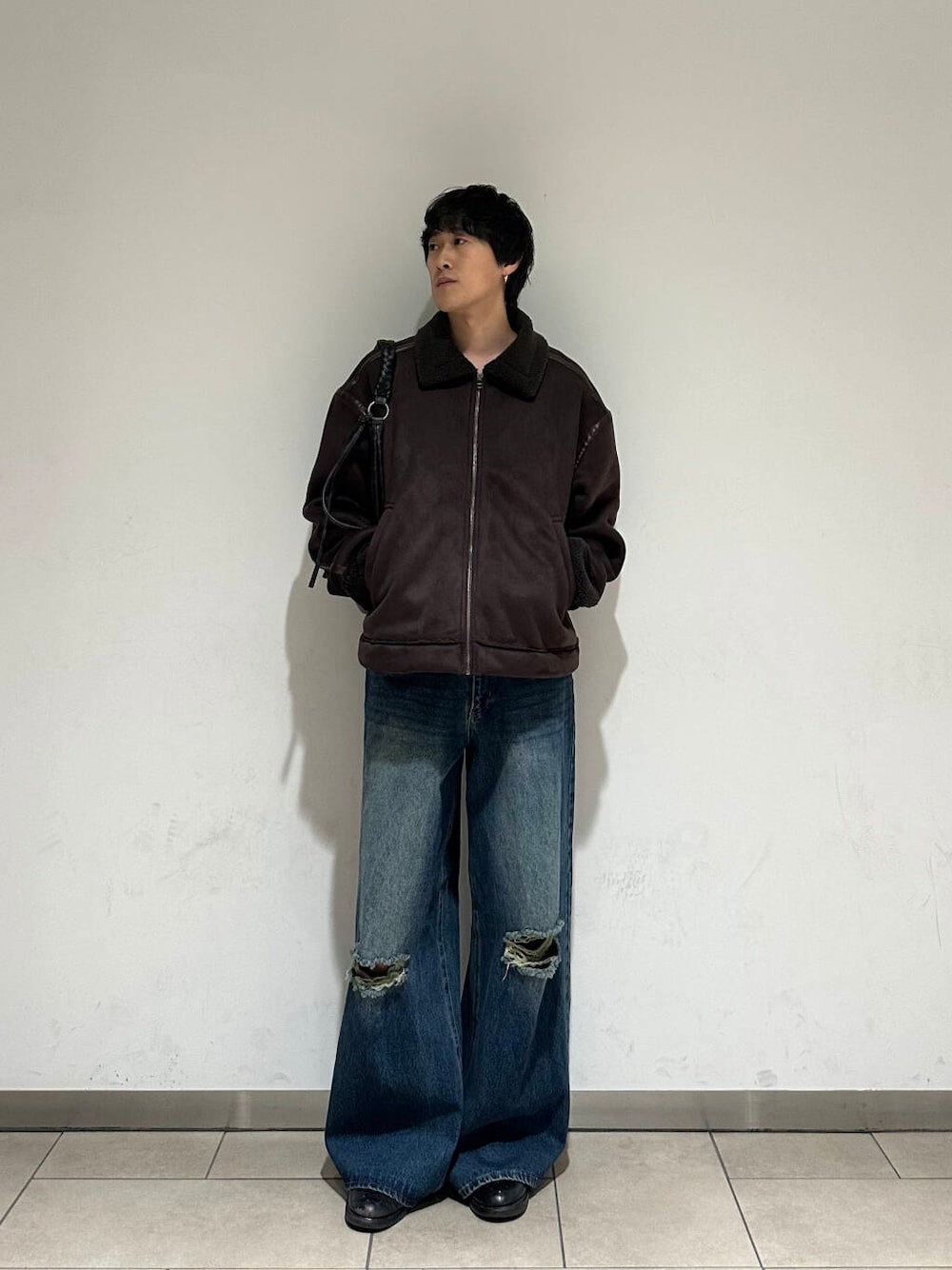 ご覧いただきありがとうございます! 身長175cm/普段Lサイズ着用 アウター ・カラー【ブラウン】 ・サイズ【M】 ・シルエット【やや大きめ】 →サイズダウンしてコンパクトめに着ても良かったです! パンツ ・カラー【ブルー】 ・サイズ【L】 ・シルエット【太めなシルエット】 →・ダメージ加工に抜け感があり、コーデにアクセントを出してくれます! 是非店頭でお悩みの際は お気軽にお声掛けください○