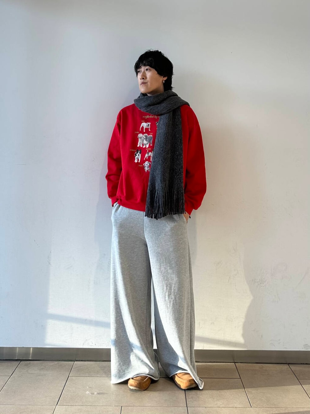 トップス ・カラー【レッド】 ・サイズ【L】 ・シルエット【大きめ】 →裏起毛になっていてるところが◎ パンツ ・カラー【グレー】 ・サイズ【F】 ・シルエット【太め】 →ウエストゴムでメンズでも履いていただけます! 是非店頭でお悩みの際は お気軽にお声掛けください○